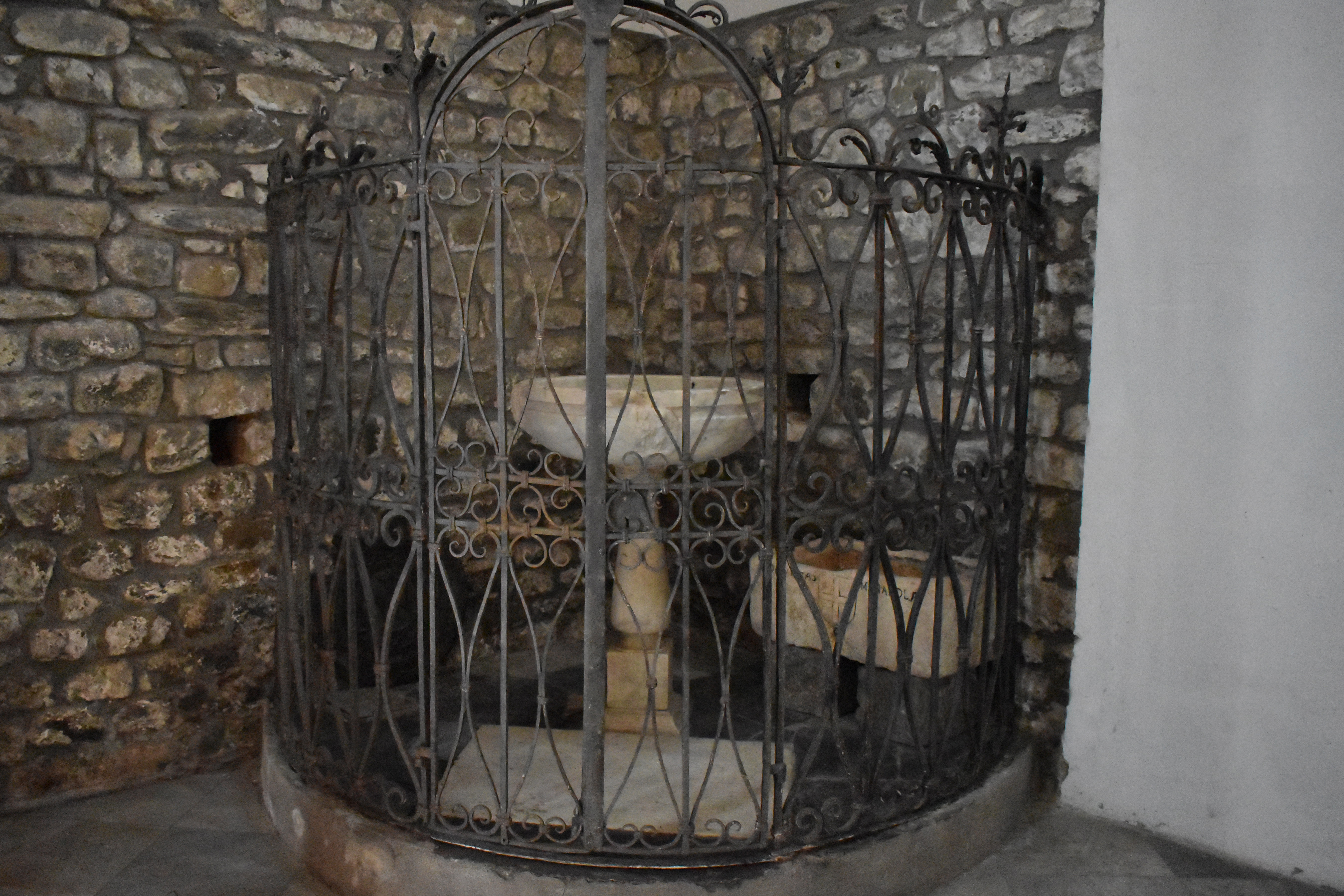 Отдельно от здания церкви находится четырехугольная колокольня, построенная в XIV веке на остатках древней смотровой башни для наблюдения и защиты от набегов сарацинов.