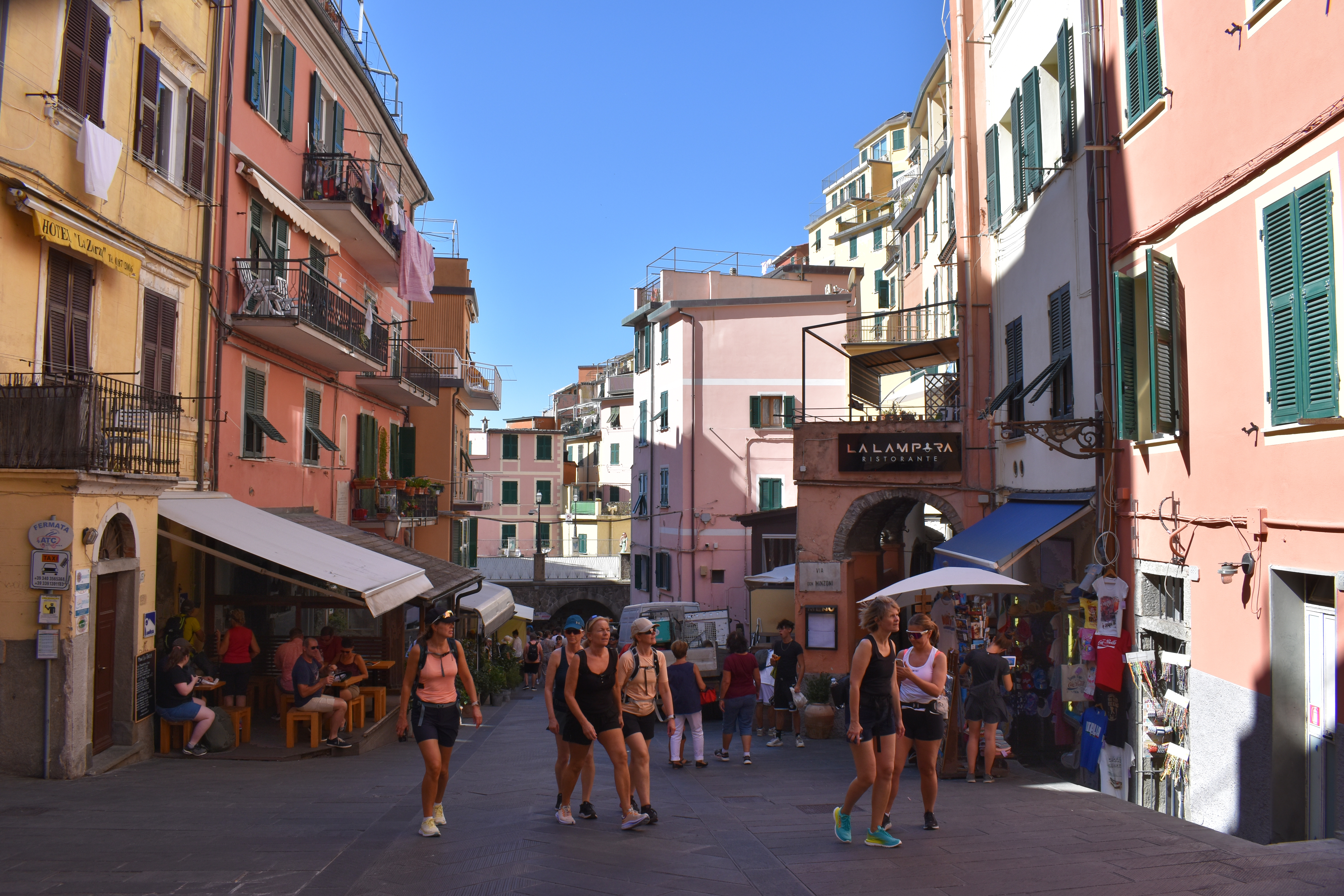 В Риомаджоре через весь город к морю ведёт довольно широкая по меркам Чинкве-Терре главная улица с многоэтажными зданиями. Гавань представляет собой впечатляющую картину возвышающихся, надвигающихся, поднимающихся фасадов всевозможно окрашенныхдомов: красных, оранжевых, желтых, фиолетовых и всегда красиво выглядящих. Жизнь жителей в основном проходит на улице, ведущей вверх. Именно здесь расположены многочисленные магазины, кафе и рестораны.