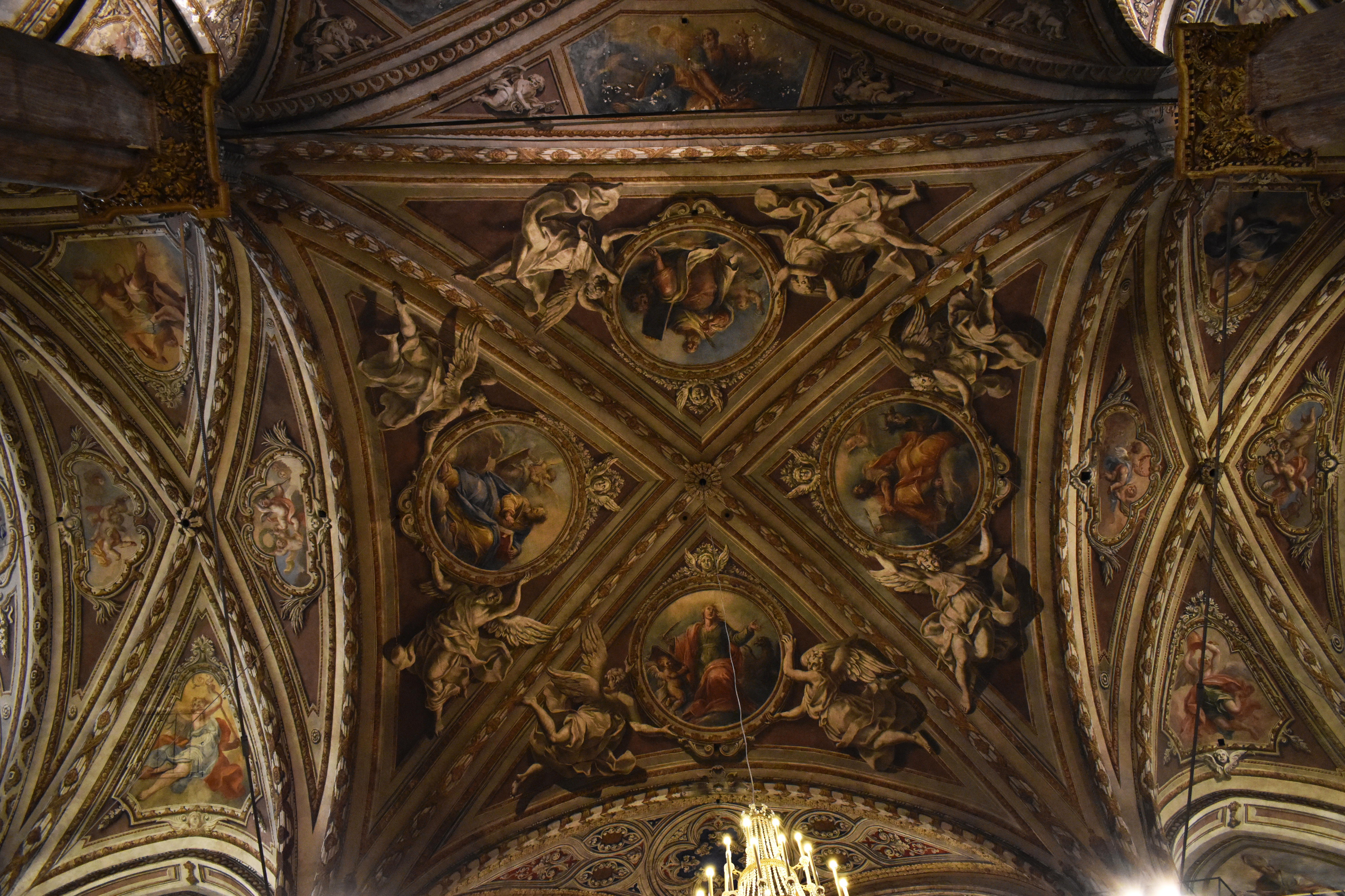 Фрески на сводах датируются второй половиной XVIII века и относятся к Пьетро Караттоли (итал. Pietro Carattoli), Франческо Аппиани (итал. Francesco Appiani), Винченцо Монотти (итал. Vincenzo Monotti), Марчелло Леопарди (итал. Marcello Leopardi), Доменико Сергарди (итал. Domenico Sergardi), Карло Спиридионе Мариотти (итал. Carlo Spiridione Mariotti).