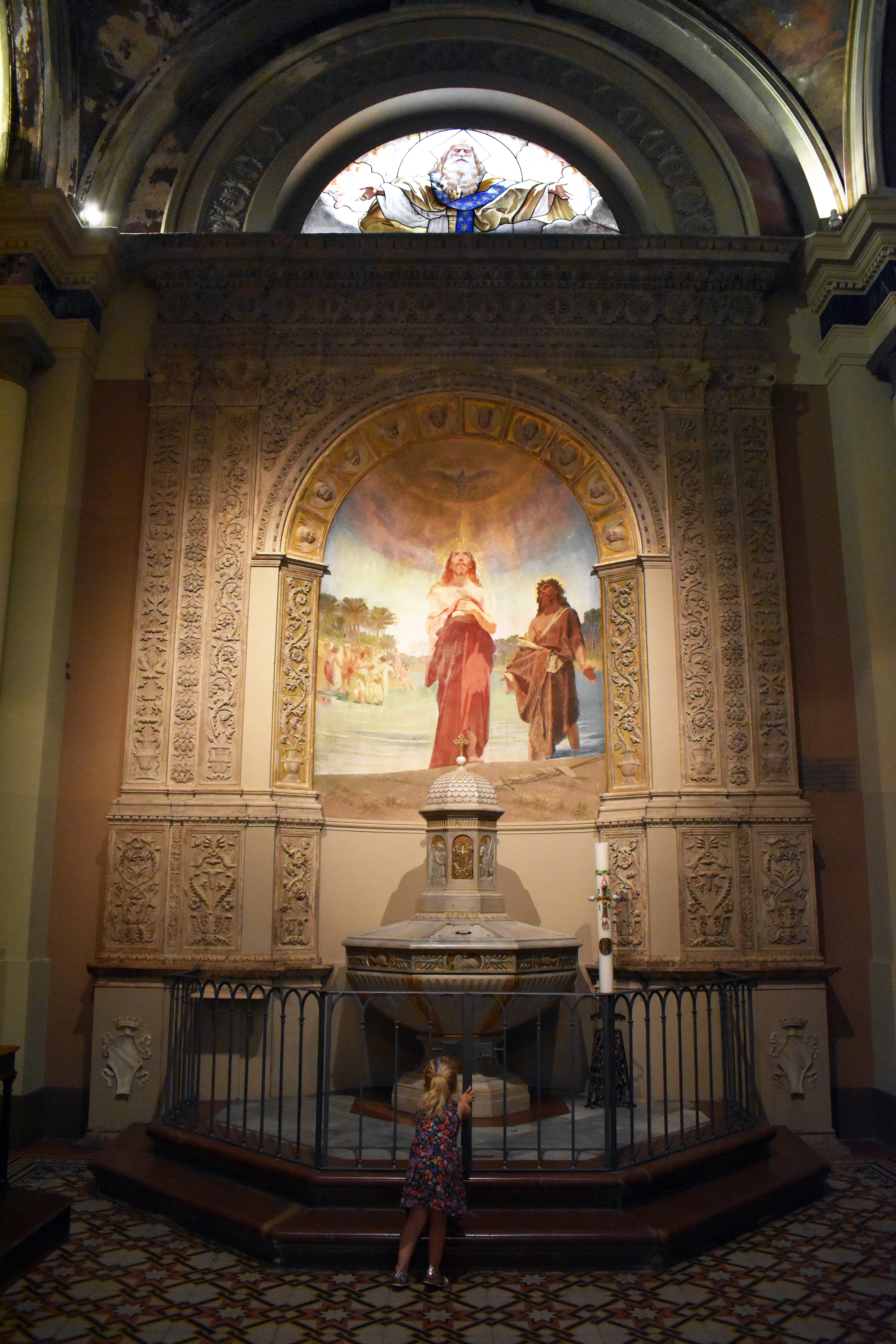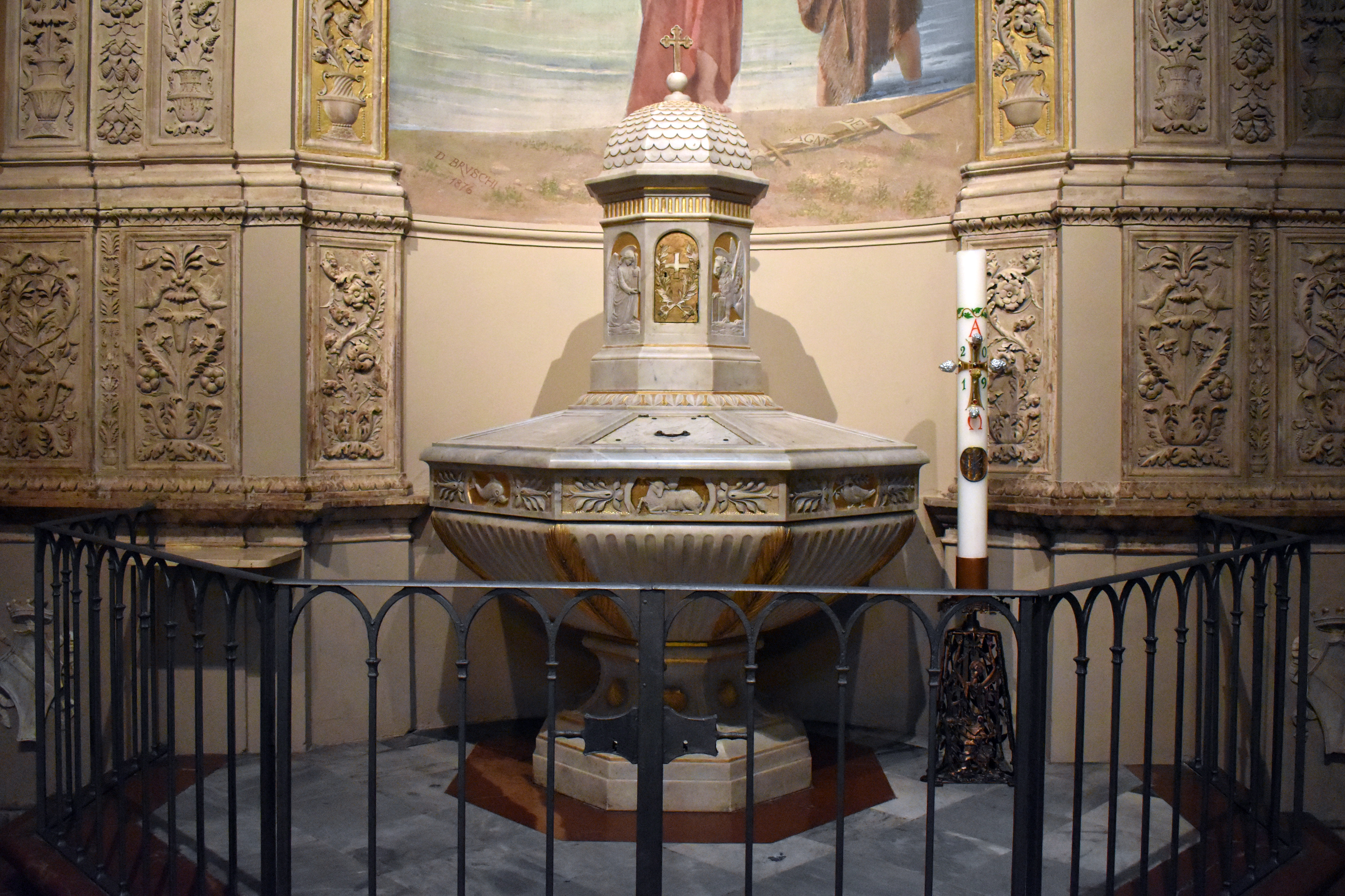 Крестильная купель принадлежит работе Джузеппе Лучетти (итал. Giuseppe Luchetti) в 1876 году.