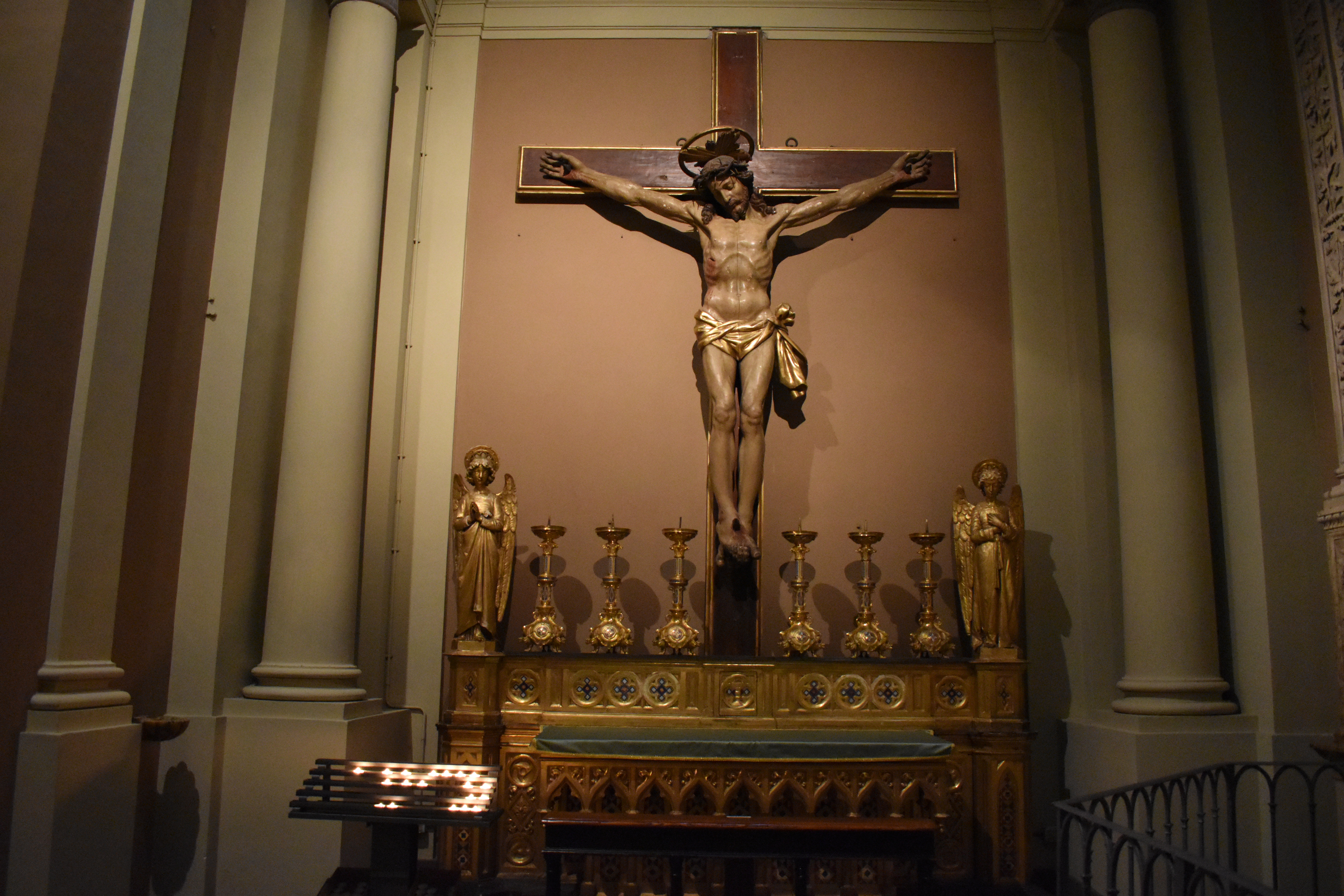 На левой стене закреплено большое деревянное распятие французского мастера Кристофера Фурнье (фр. Cristoforo Fournier), созданное в 1656 году. Это распятие изначально было установлено в апсиде.