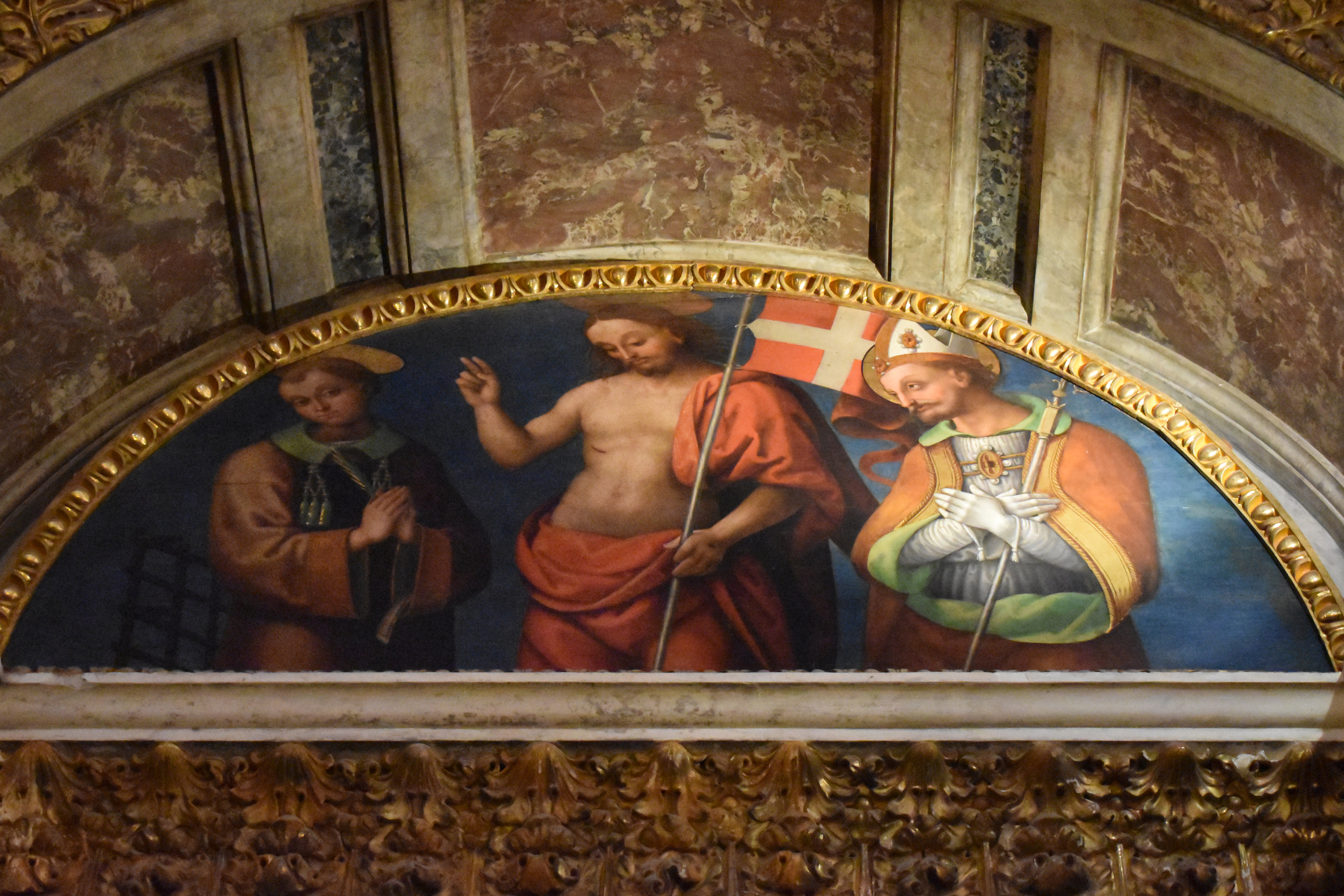 Капелла справа от пресвитерия ведёт к ризнице, украшенной фресками Джованни Антонио Пандольфи ди Пезаро (итал. Giovanni Antonio Pandolfi di Pesaro) в 1572-1578 годах.