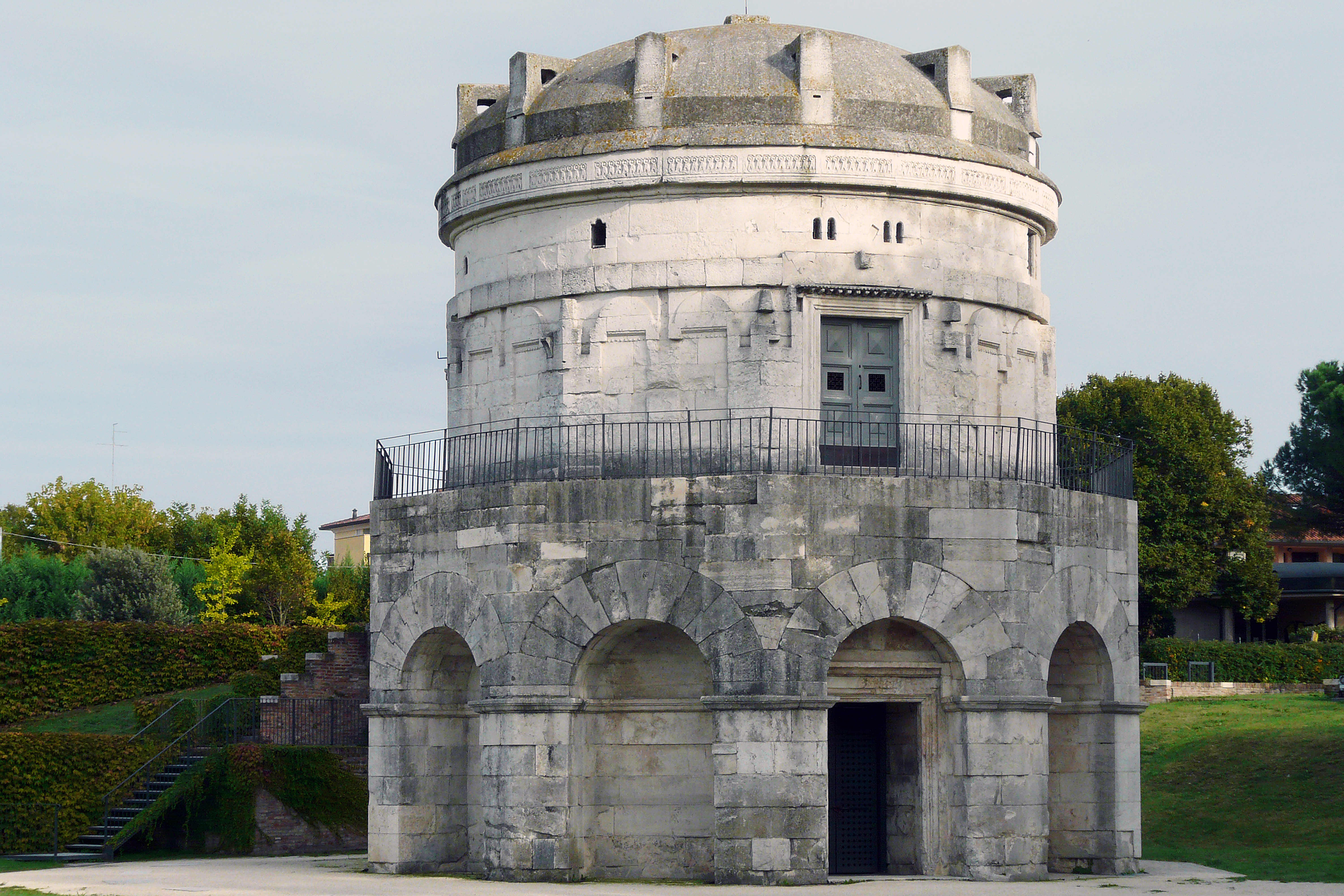 Этот довольно скромный внешне и небольшой по размерам мавзолей находится на окраине города. Его построил Теодорих для своего будущего упокоения на месте действовавшего в те времена кладбища готов. Здание мавзолея двухуровневое, десятигранное. Купол вытесан из цельного камня весом более трехсот тонн. На верхнем этаже расположено помещение для гробницы, в нижней секции – часовня. И изнутри, и снаружи стены мавзолея не имеют никаких украшений. Внутри нет декоративного убранства, кроме саркофага – мощной глыбы порфира, в которой вытесана особая "ванна".