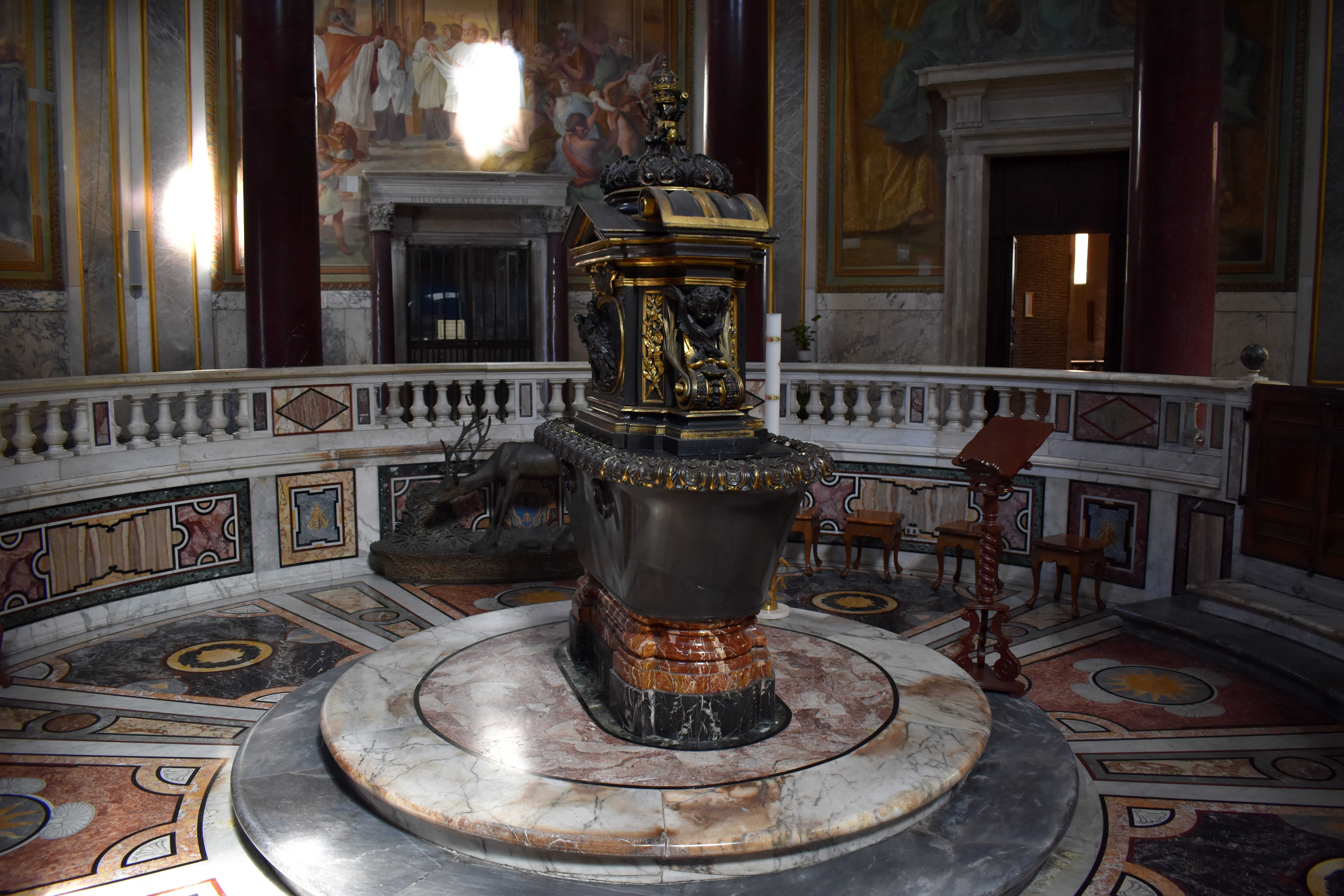 Первым из известных баптистериев, т.е. сооружений, построенных специально для целей крещения, в Риме стал баптистерий Сан-Джованни-ин-Фонте. Его постройка произошла, вероятно, при Сиксте III (423-430 гг.) и здание представляет собой отдельное сооружение. Его восьмиугольная форма повлияла на другие ранние баптистерии.