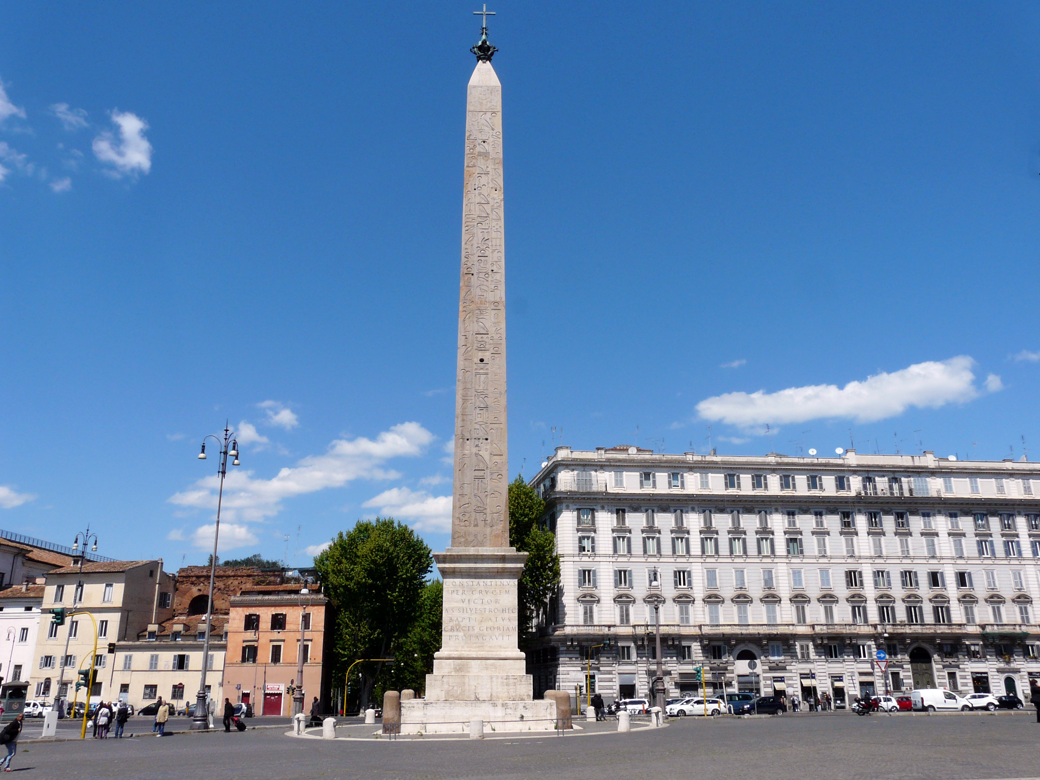 Неподалеку от дворца и базилики был установлен Латеранский обелиск. Созданный при фараоне Тутмосе III, он был привезен в город и установлен императором Константином Великим в Большом цирке. Первоначально он весил 455 тонн. Со временем обелиск разрушился. Хотя куски обелиска были найдены в XIV и XV веках, серьезные раскопки были возможны только при папе Сиксте V. Три части латеранского обелиска были выкопаны в 1587 году, а после восстановления архитектором Доменико Фонтана обелиск стал на 4 метра короче, высотой 45,7 метра и массой 330 тонн. Воздвигнутый на месте нахождения конной статуи Марка Аврелия возле Латеранского дворца и базилики Святого Иоанна Латеранского 9 августа 1588 года, он стал последним древним египетским обелиском, который был возведен в Риме. Обелиск был увенчан крестом, а пьедестал был украшен надписями, объясняющими его египетскую историю и путешествия в Александрию и Рим, в которых упоминалось крещение Константина Великого. Латеранский обелиск – самый большой в мире древний египетский обелиск, а также самый высокий обелиск в Италии.