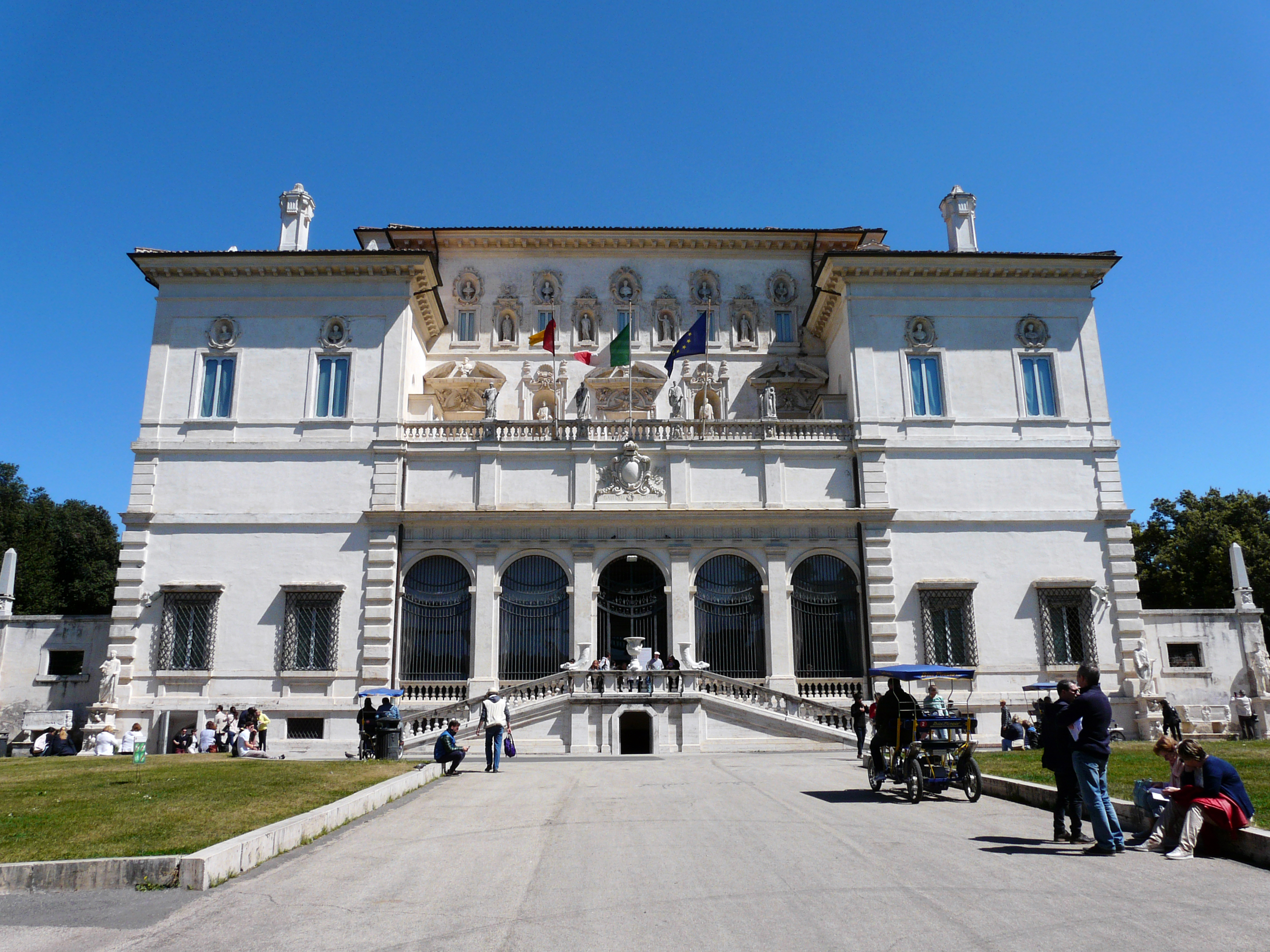 Расположенная в самом сердце огромного парка, излюбленного места прогулок жителей Рима, уютная вилла Боргезе хранит статуи, барельефы, античные мозаики, а иакже картины и скульптуры XVI-XVIII вв., включая шедевры художников Антонелло да Мессина, Джованни Беллини, Рафаэля, Тициана, Корреджо и Караваджо, скульпторов Джан Лоренцо Бернини и Антонио Кановы.