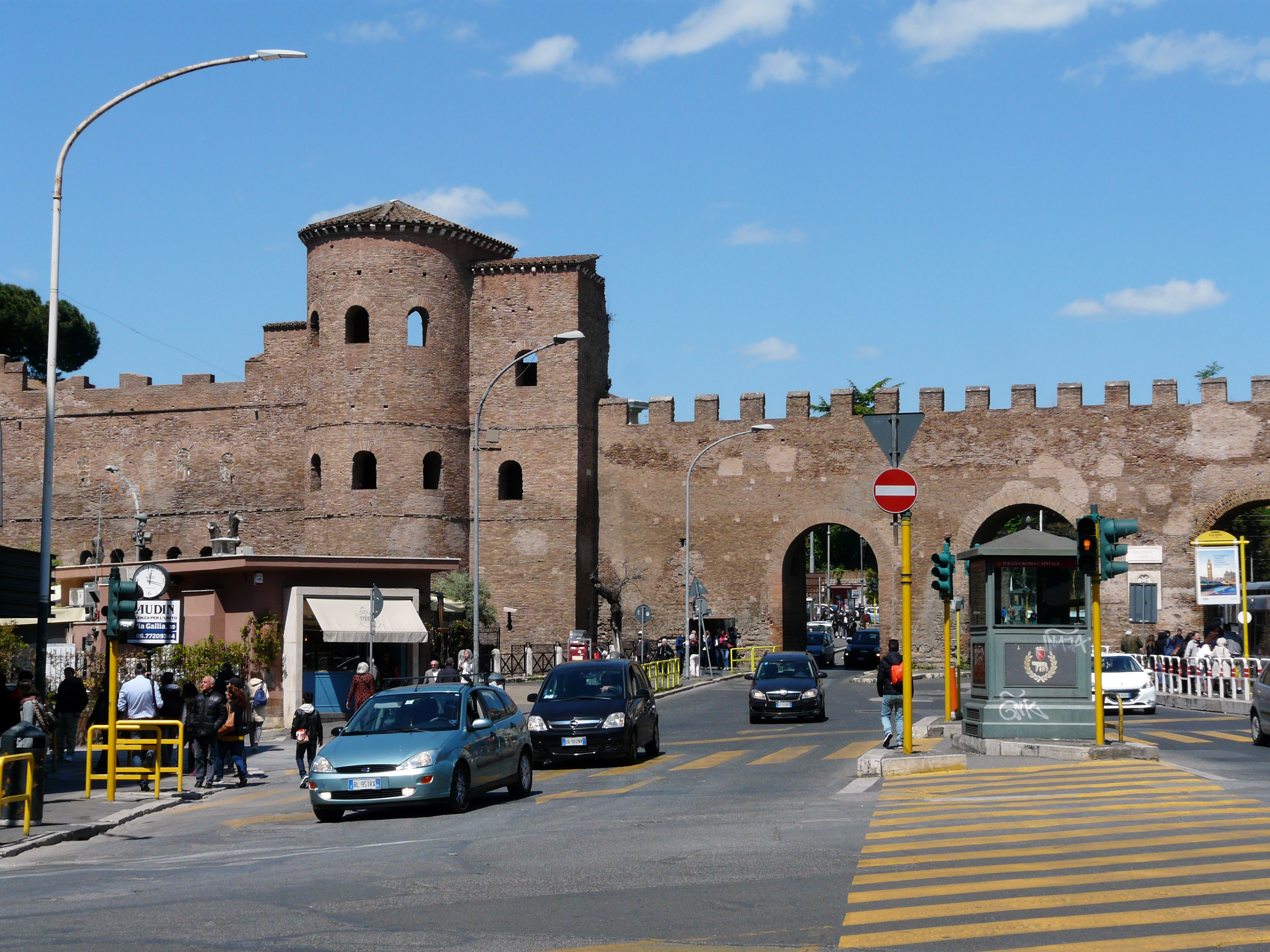 Церковь Санта-Мария-ин-Виа-Лата – очень старая церковь, построенная с использованием древнеримского портика; в XI веке из-за подъема уровня земли над старой была построена новая церковь. Церковь носит своё имя от древней Виа Лата, в те времена очень известной и популярной, потому что, находясь вне города, она была украшена и окружена великолепными продажными зданиями, для использования и удобства иностранцев, еще не принятых в гражданство. Первоначально Виа дель Корсо, на которой расположена церковь, была городской частью Виа Фламиния, римской дороги, которая соединяла город с Аримином (Римини). Из-за относительной ширины его южная часть от площади Венеции до Сан-Марчелло также была известна как Виа Лата (широкая), как и другие главные улицы итальянских городов (например, Виа Ларга во Флоренции и Милане).