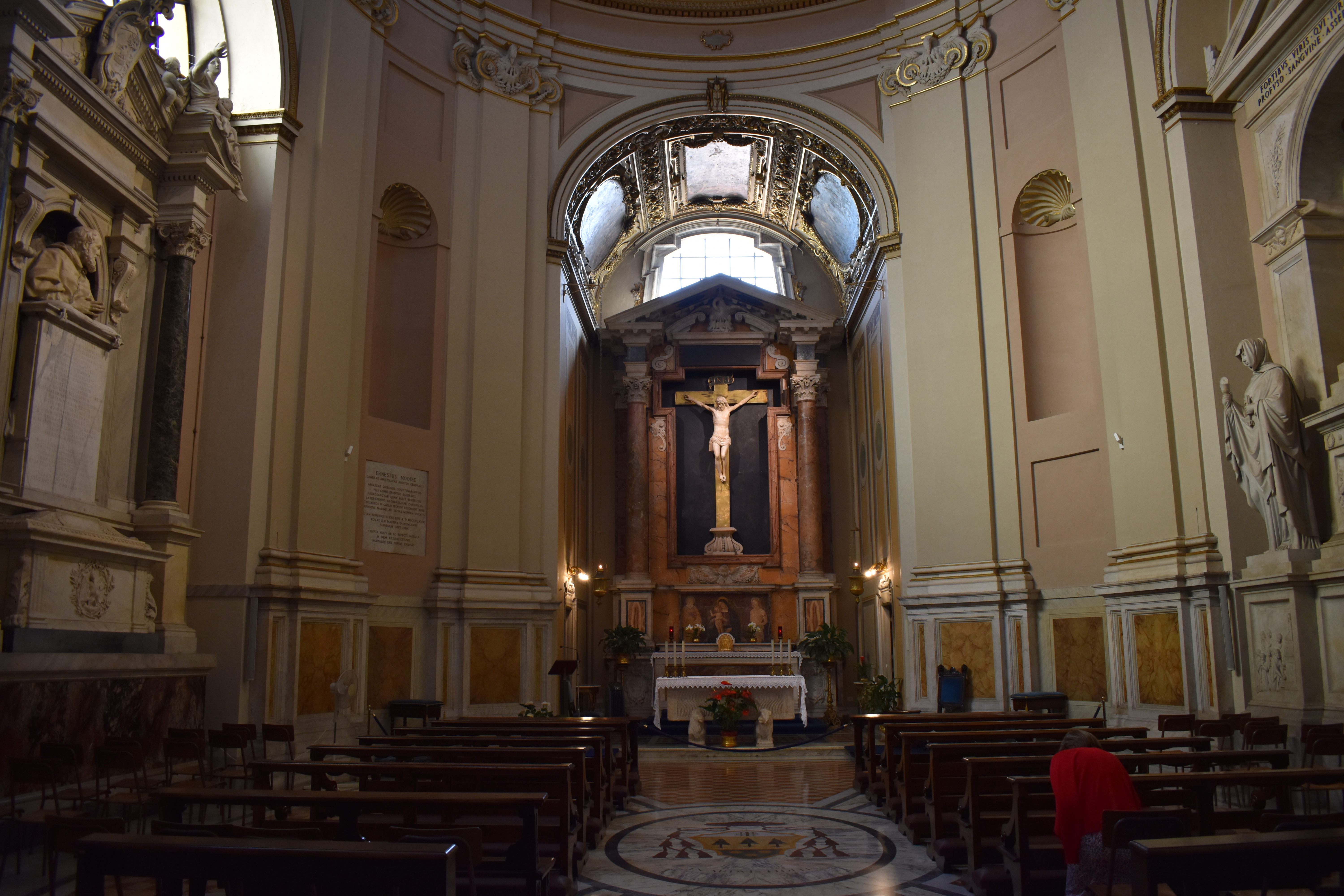 Далее находится капелла Пресвятого Распятия или Капелла Массимо (по имени семьи, получившей ее покровительство), спроектированная Джакомо делла Порта в XVI веке. Капелла имеет бочкообразный свод. На алтаре в нише в форме раковины находятся Распятие (работа Сермонета) и Апостол Иоанн в старости (работа Кавалье д'Арпино).
