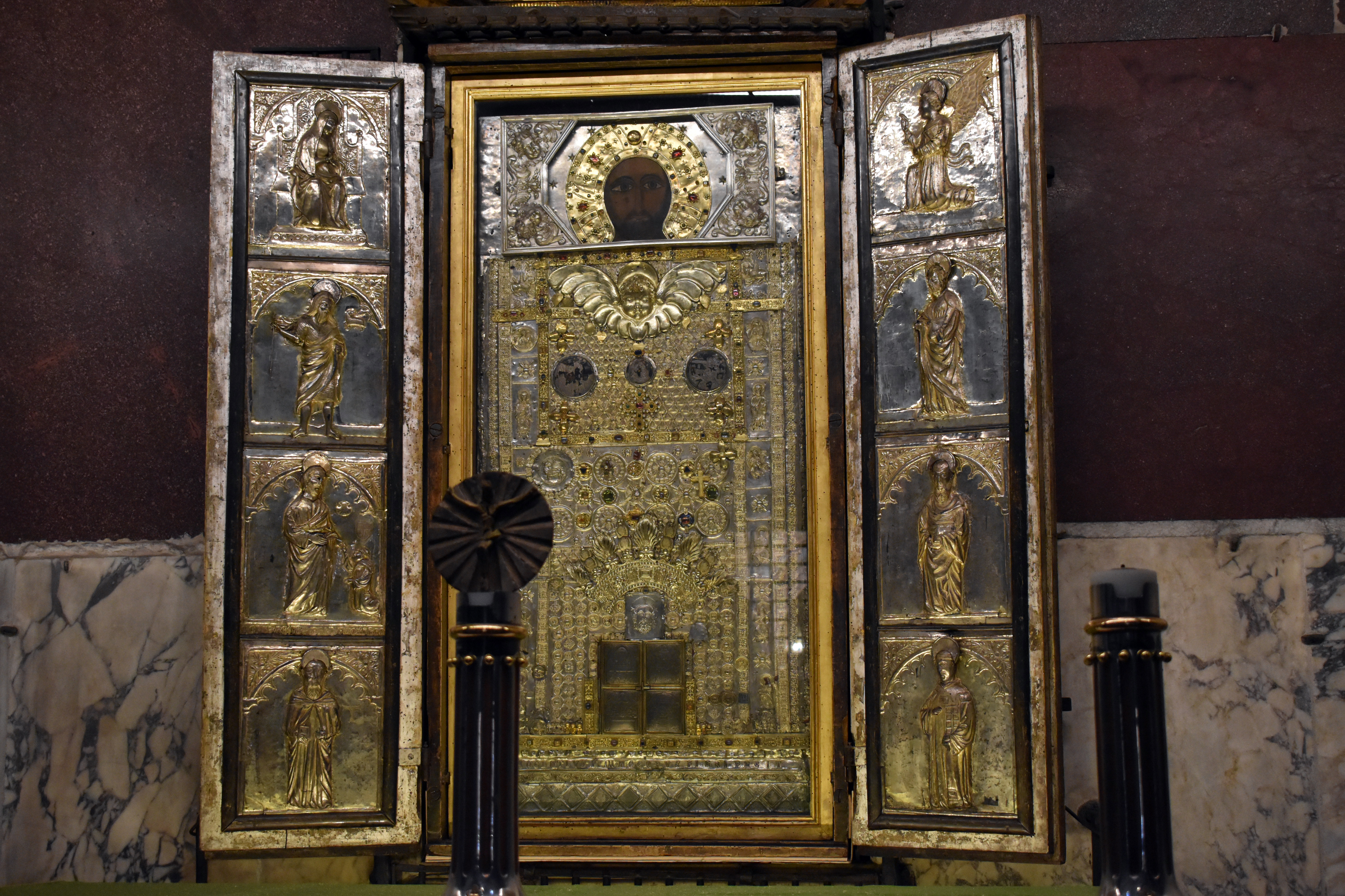 Над алтарём капеллы установлена икона Спасителя на престоле (также известна как Нерукотворный образ Спасителя), выполненная темперой на тканевой основе, наклеенной на ореховую доску (142х70 см), ныне – под многослойной записью. Согласно преданиям, образ может происходить из Иерусалима (написан апостолом Лукой и завершён ангелом) или из Константинополя времени Льва Исавра (VIII в.). В действительности он создан в Риме при папе Иларии и впервые упоминается в "Liber Pontificalis" в жизнеописании папы Стефана II (752–757 гг.), который в 752 г. нёс образ на плечах, когда процессия двигалась к базилике Санта-Мария-Маджоре с молитвой об избавлении Рима от вторжения лангобардов. В том же источнике, в жизнеописании папы Льва IV (847–855 гг.), образ назван просто "sancta icona". Первое обновление иконы было проведено при Иоанне Х (914–928 гг.) – на её обороте был написан крест. Исследователи полагают, что уже при Иннокентии III (1198–1216 гг.) первоначальное изображение стало нечитаемым, образ был полностью закрыт серебряным окладом, поверх лика размещена шёлковая пелена с фронтальным изображением лика Спасителя, сохранившаяся до настоящего времени.
