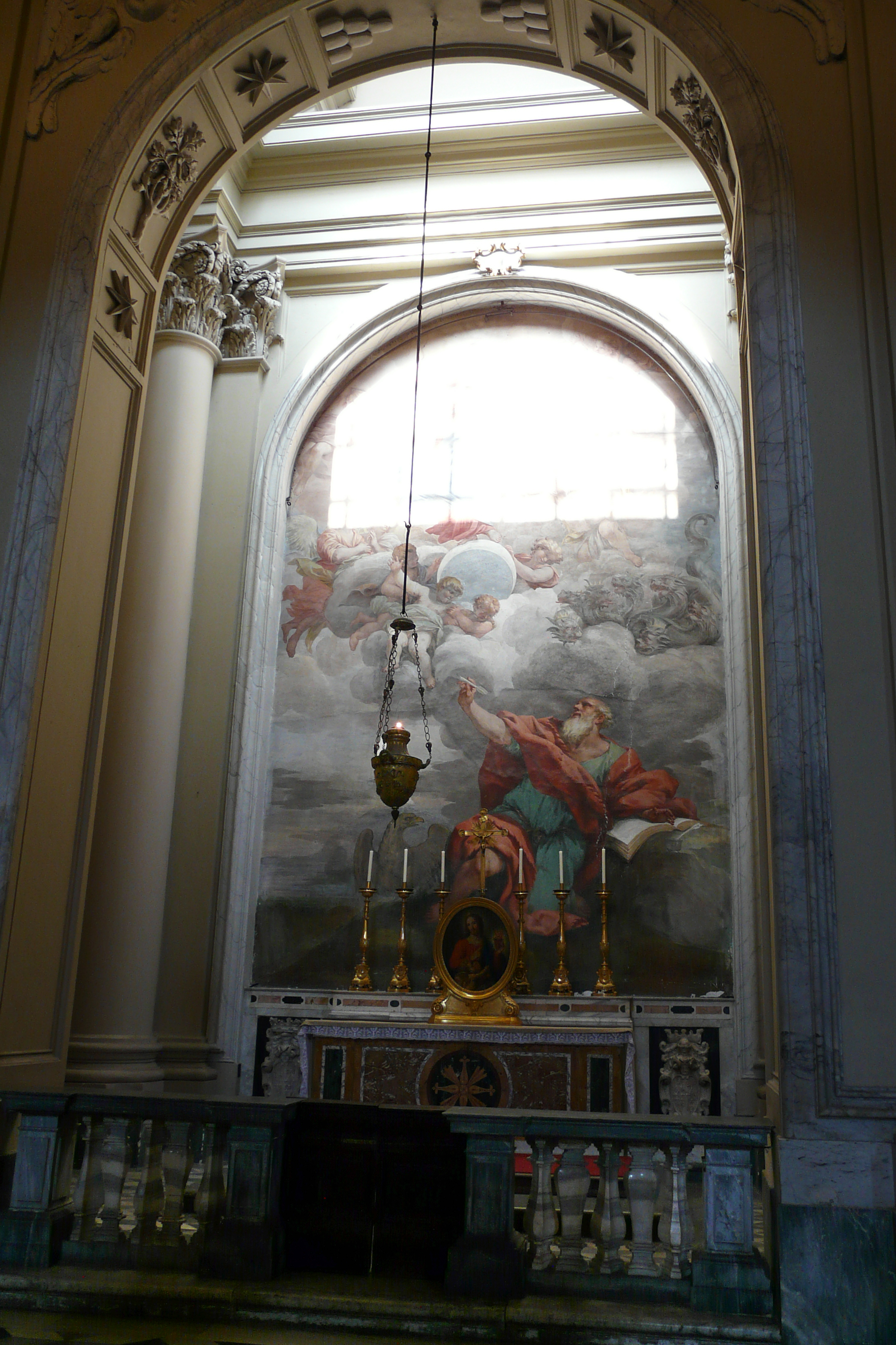 В четвертой капелле, посвященной святому Иоанну Евангелисту, находится фреска, изображающая видение святым Иоанном Непорочного Зачатия на острове Патмос, работы Лаццаро Бальди из Пистойи. В правой части капеллы находится гробница Томмазо Ингирами (по имени Фаэдра), гуманиста, изображенного Рафаэлем.