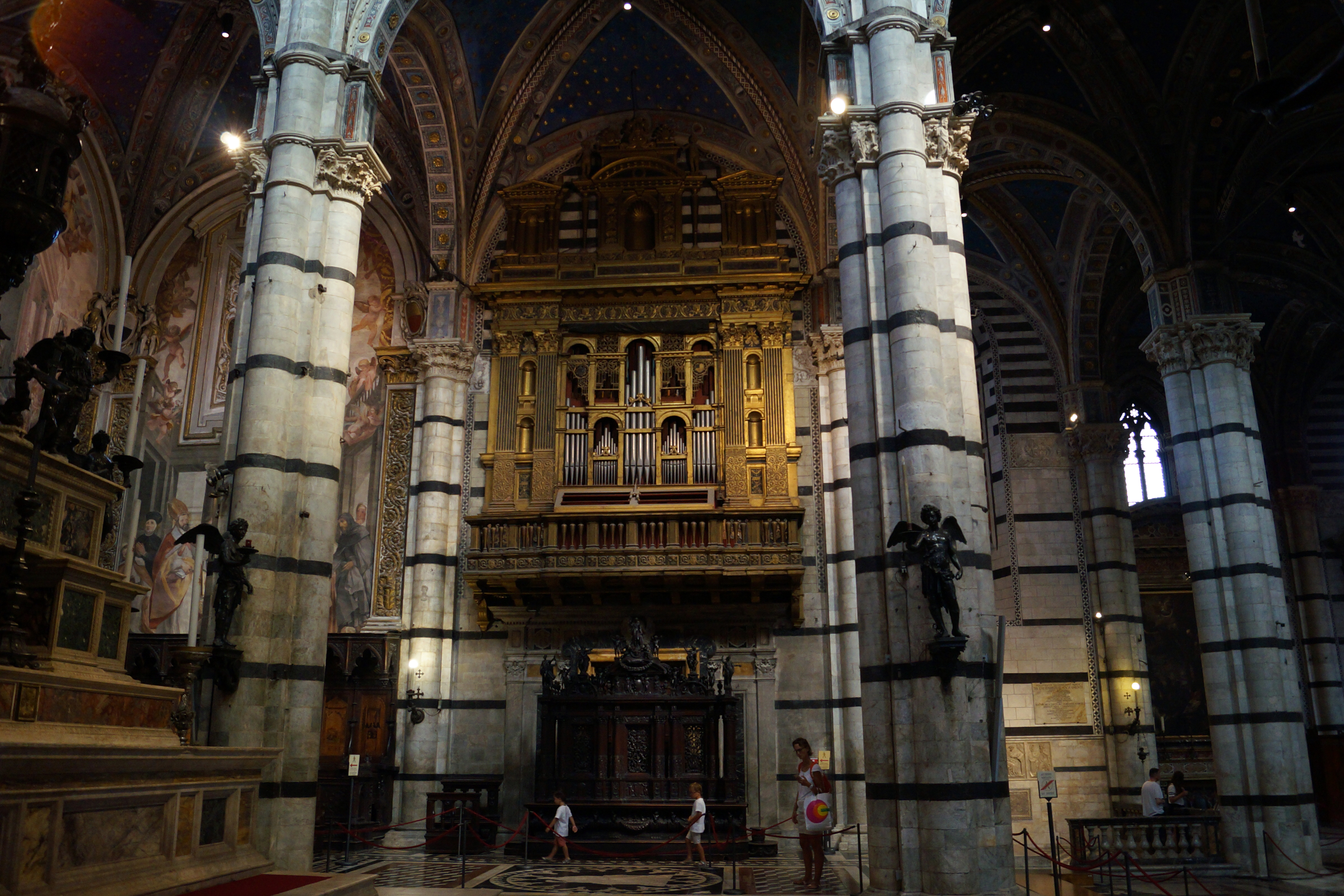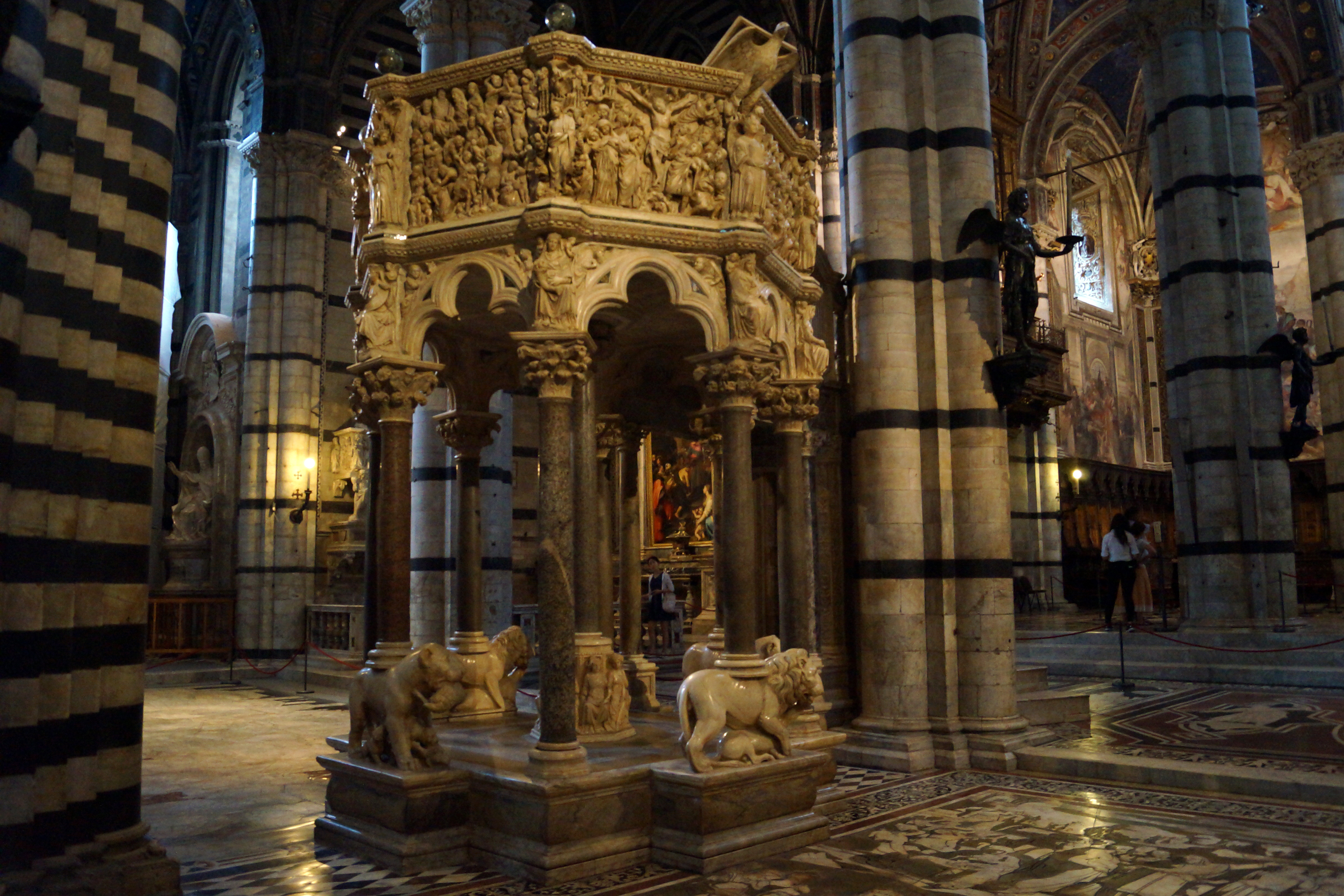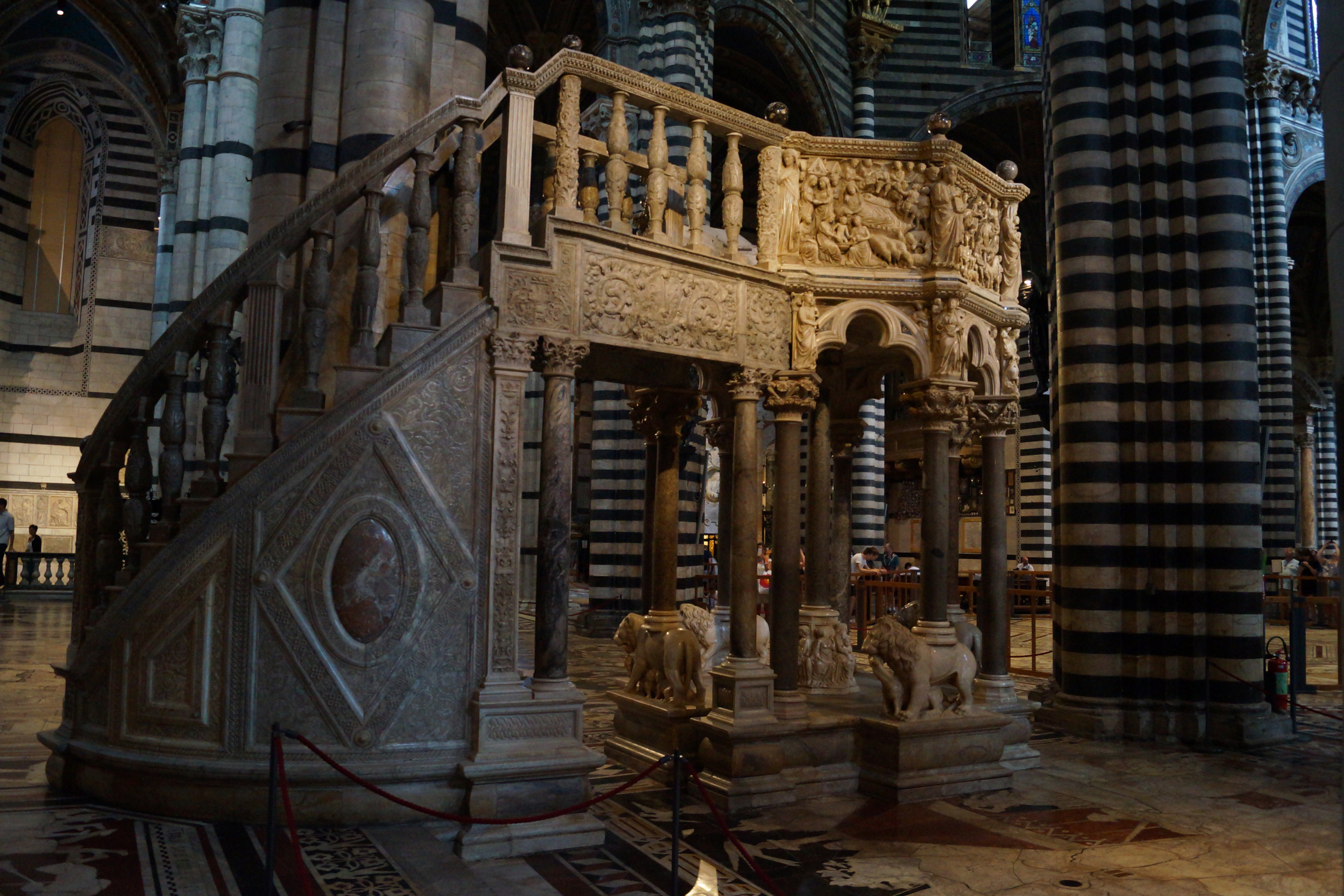 В левом поперечном нефе, где сразу же за пределами подкупольного шестиугольника, стоит Пергам – шедевр готической скульптуры, над которым в 1266-1268 годах работали Никколо Пизано с сыном Джованни и учениками Арнольфо ди Камбио, Донато и Лапо ди Ричевуто.