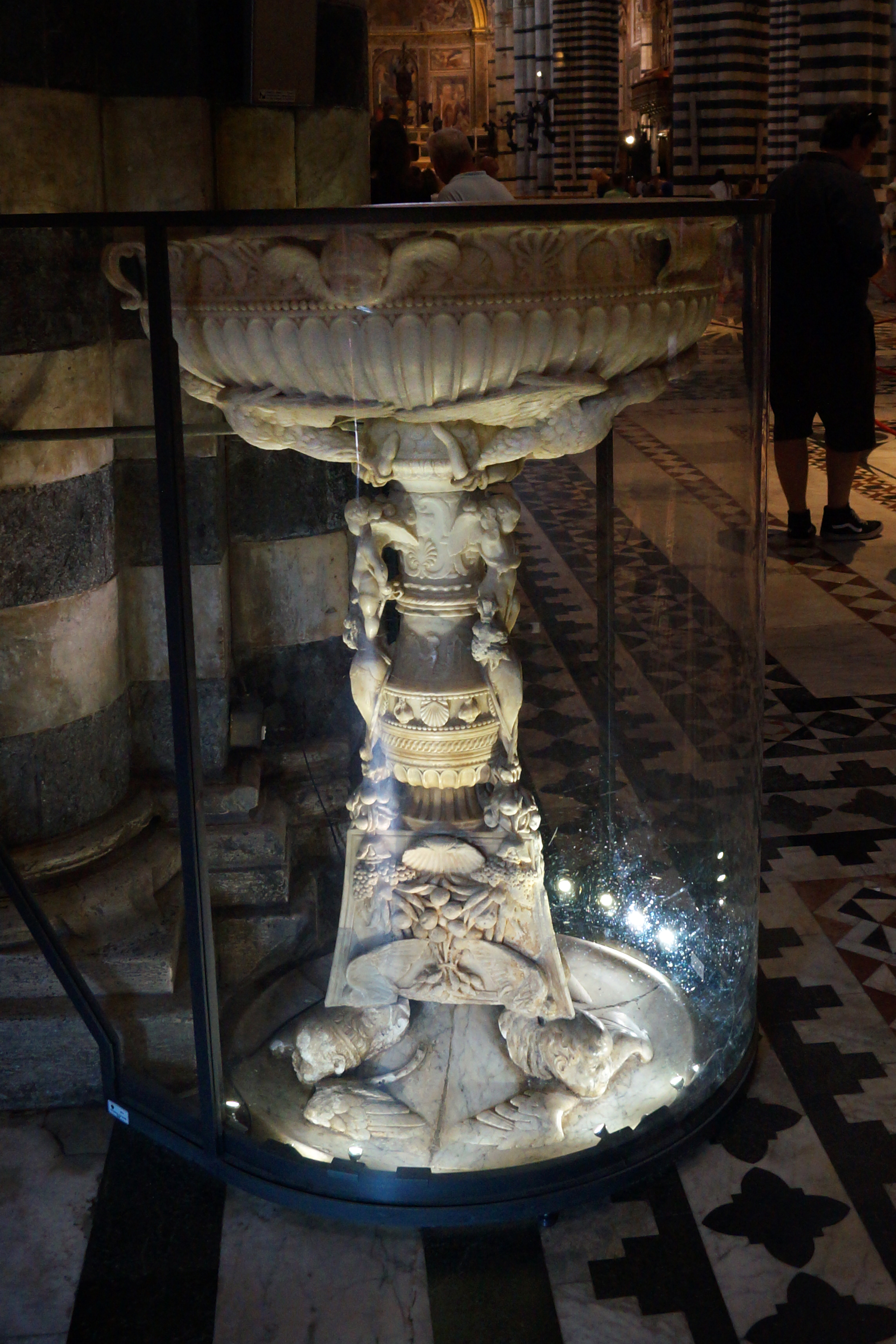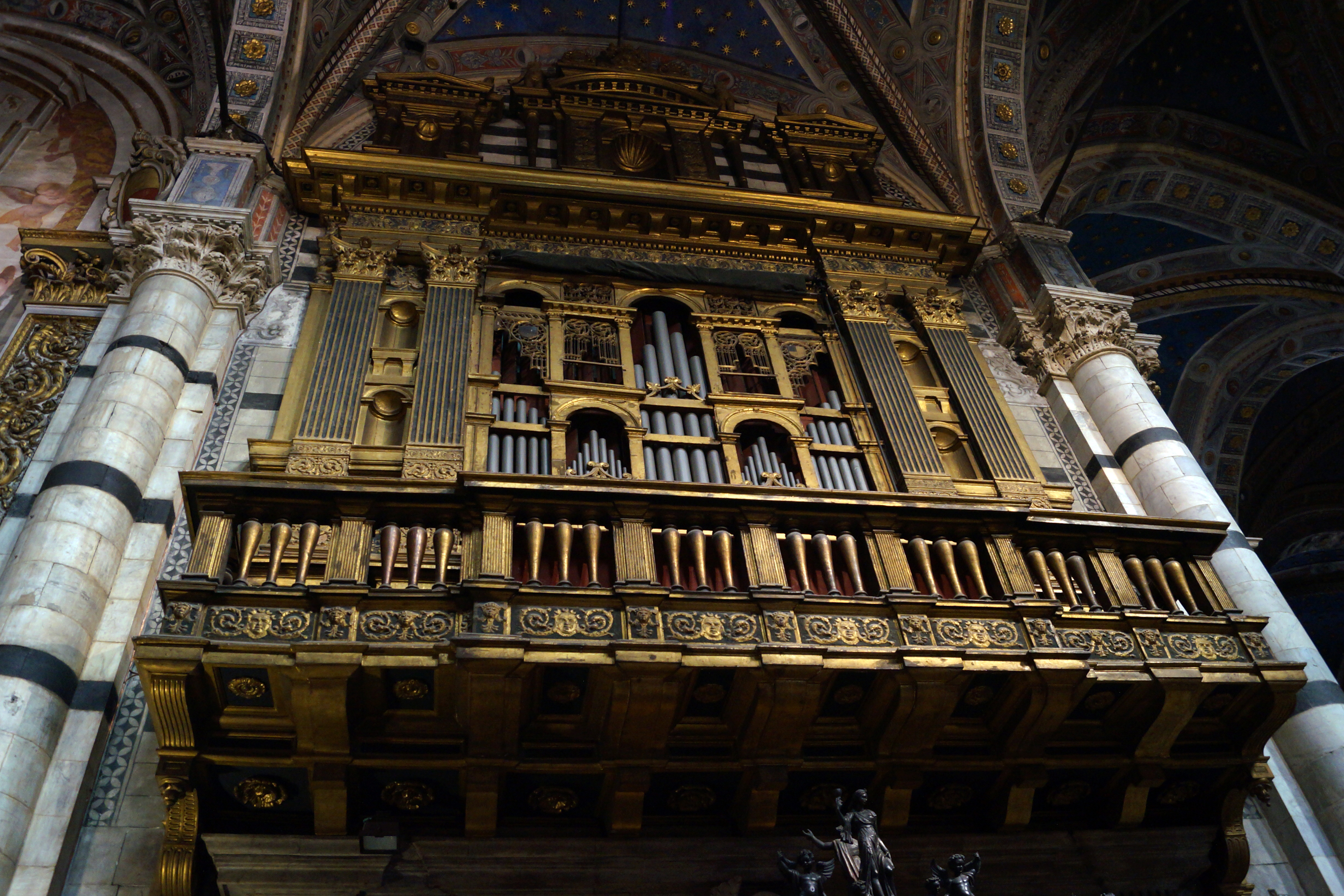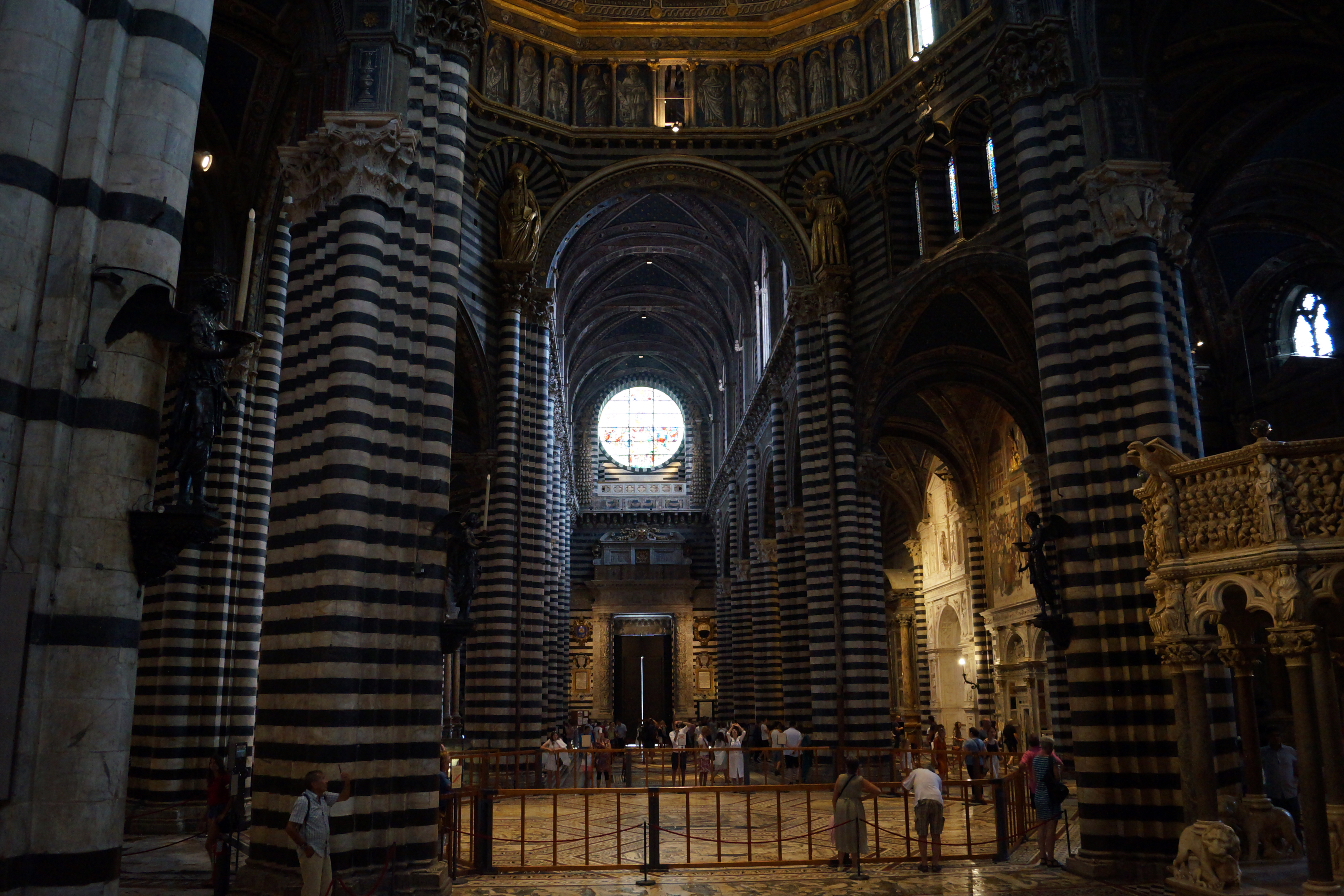 В левом поперечном нефе, где сразу же за пределами подкупольного шестиугольника, стоит Пергам – шедевр готической скульптуры, над которым в 1266-1268 годах работали Никколо Пизано с сыном Джованни и учениками Арнольфо ди Камбио, Донато и Лапо ди Ричевуто.