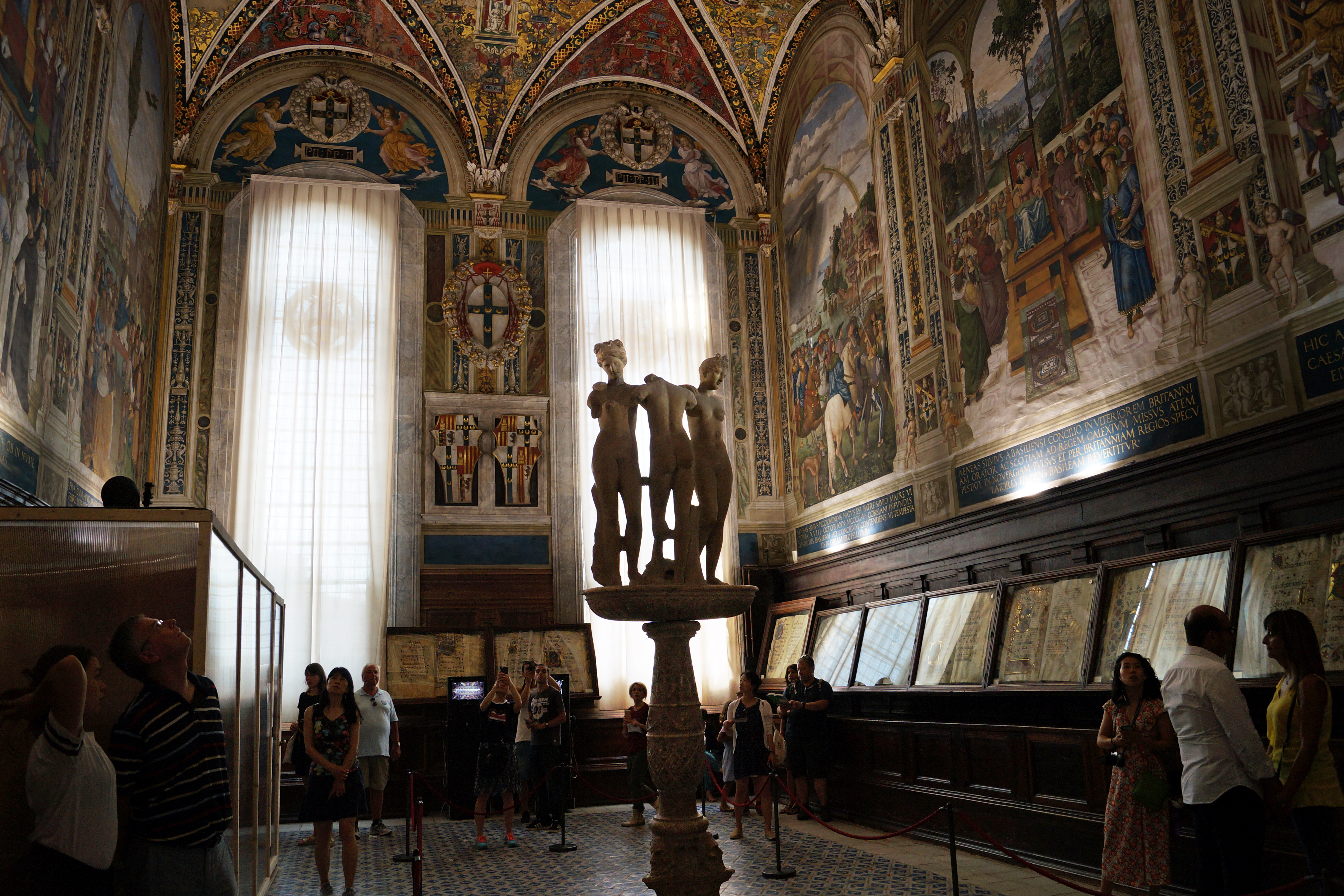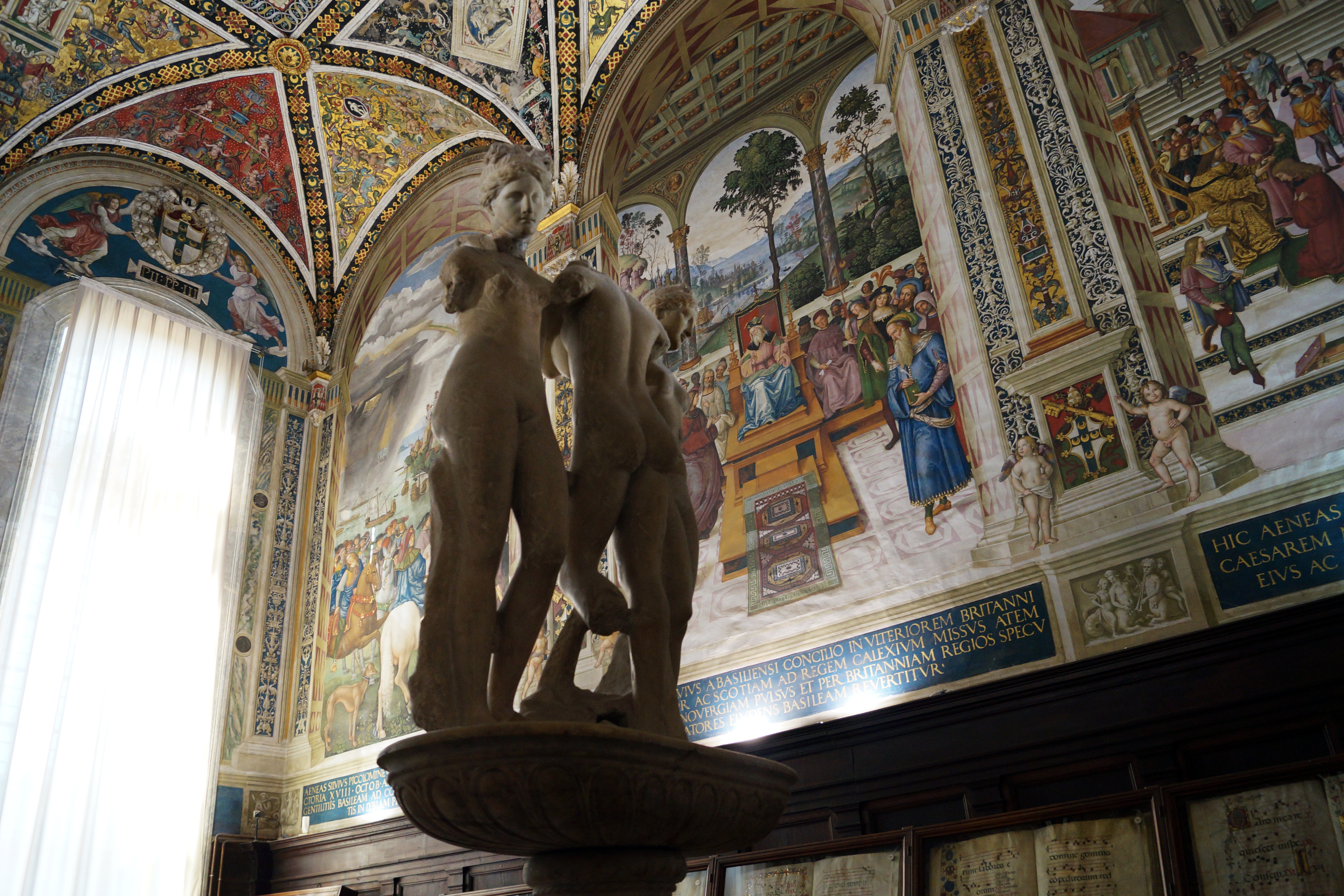 В центре помещения Библиотеки была установлена мраморная группа Три грации (дар кардинала Тодескини), считающаяся лучшей древнеримской копией среди восьми известных с греческого оригинала. Она была создана в III в.
