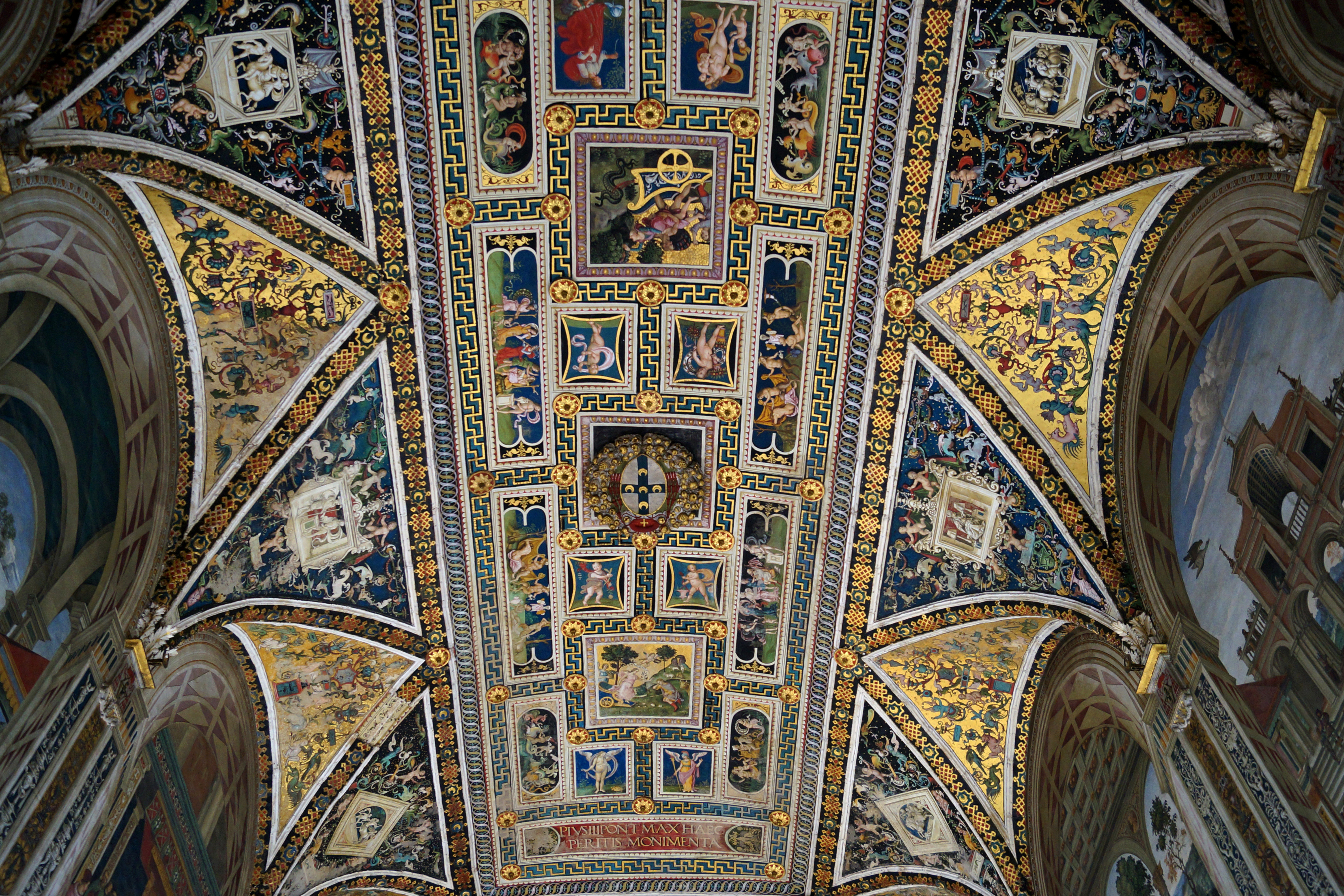Потолочные своды библиотеки. В центре эмблема Пикколомини.