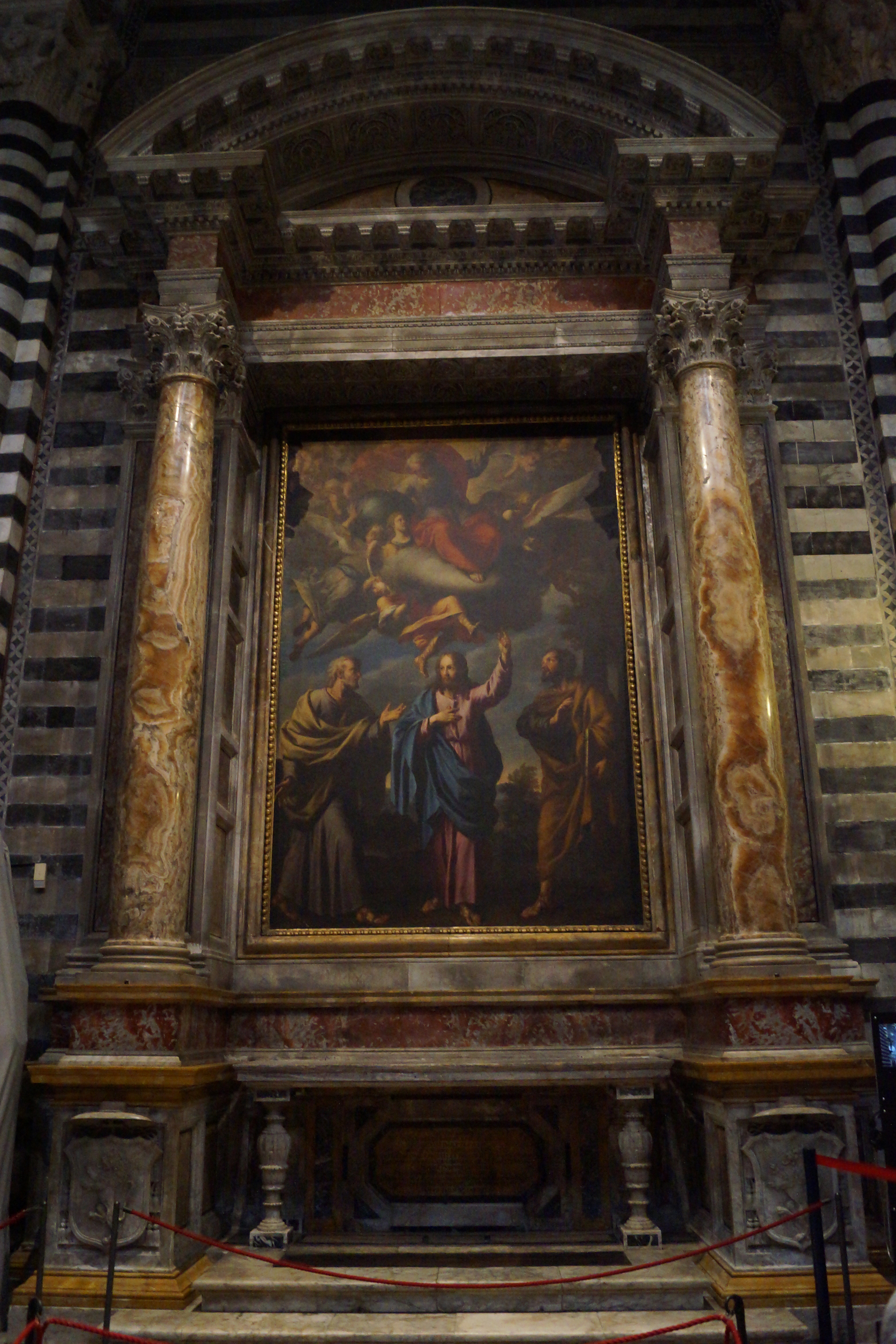 До 1506 года главный алтарь был украшен образом Девы Марии "Похвала Богородицы", окружённой ангелами, поющими ей славу; по-другому, Маэста́" (итал. maestà – величание), работы Дуччо ди Буонинсенья, который теперь выставлен в близлежащем Музее дель Опера дель Дуомо. Маэста́ располагалась между четырьмя бронзовыми ангелами, которые сегодня мможно видеть на главном алтаре. Замена старого алтарного образа Дуччо нынешним алтарем стала результатом не только изменения художественного вкуса в пользу нового стиля эпохи Возрождения (средневековый алтарь считался старомодным и устаревшим), но и растущего внимания к культу Тела и Крови Христа.