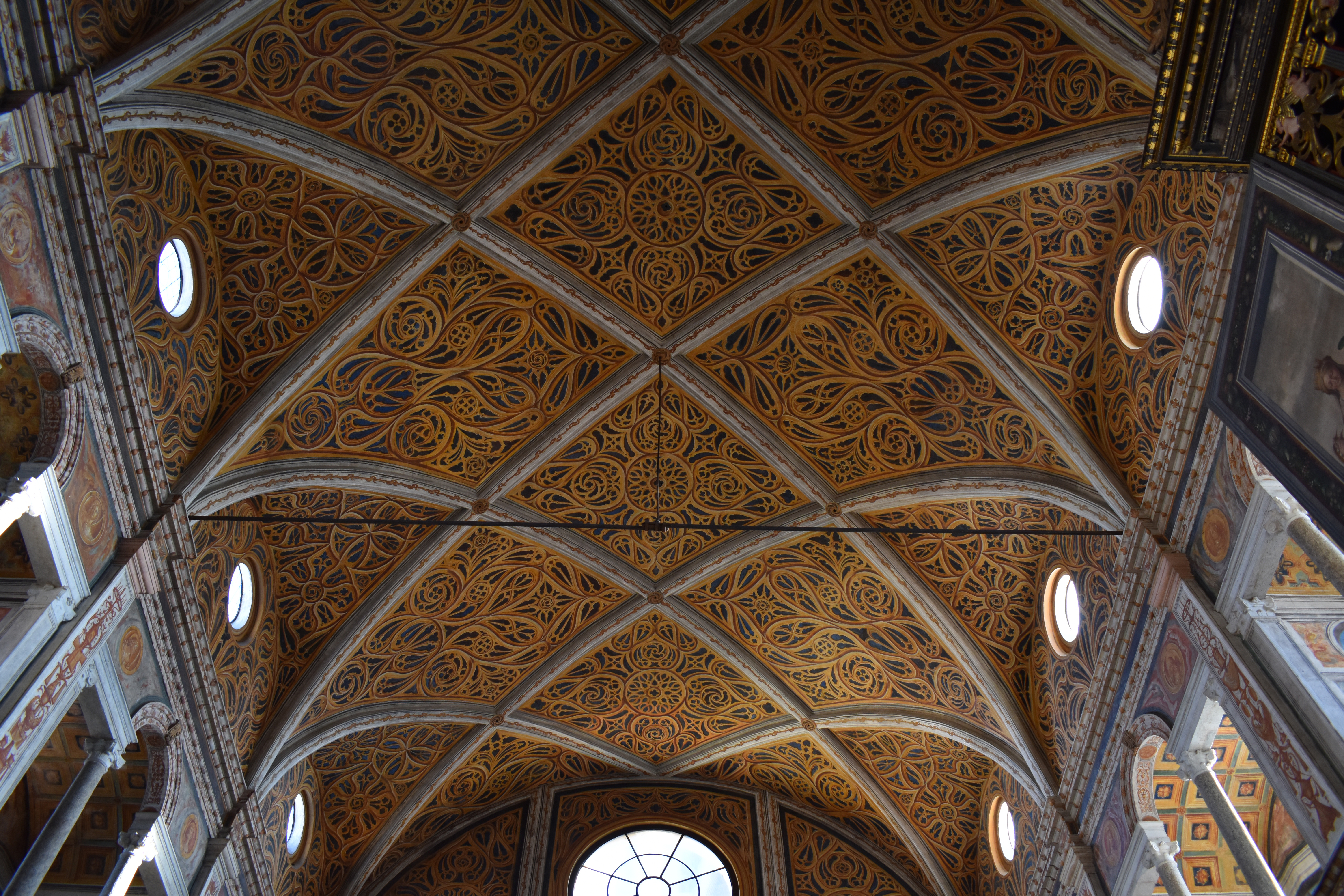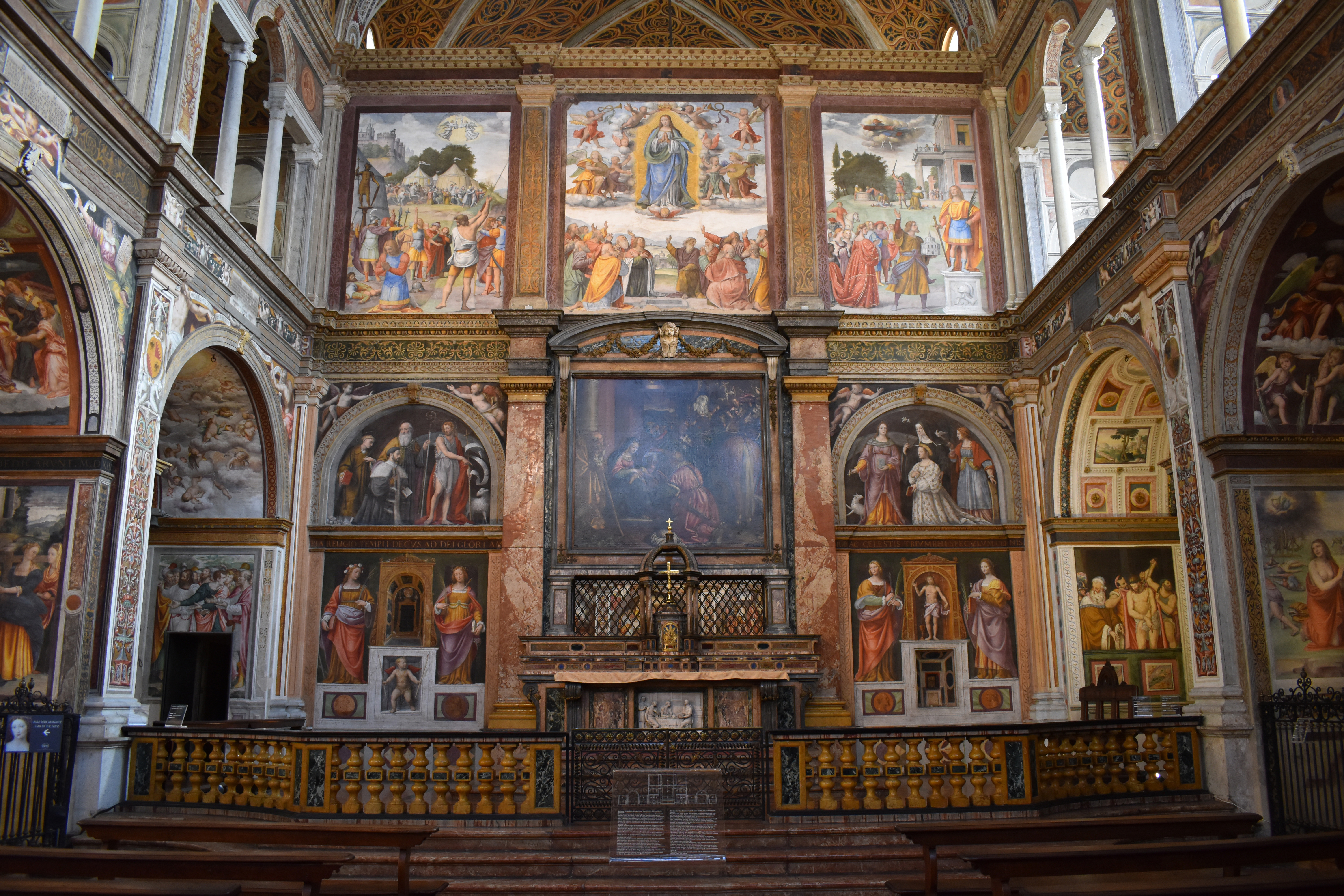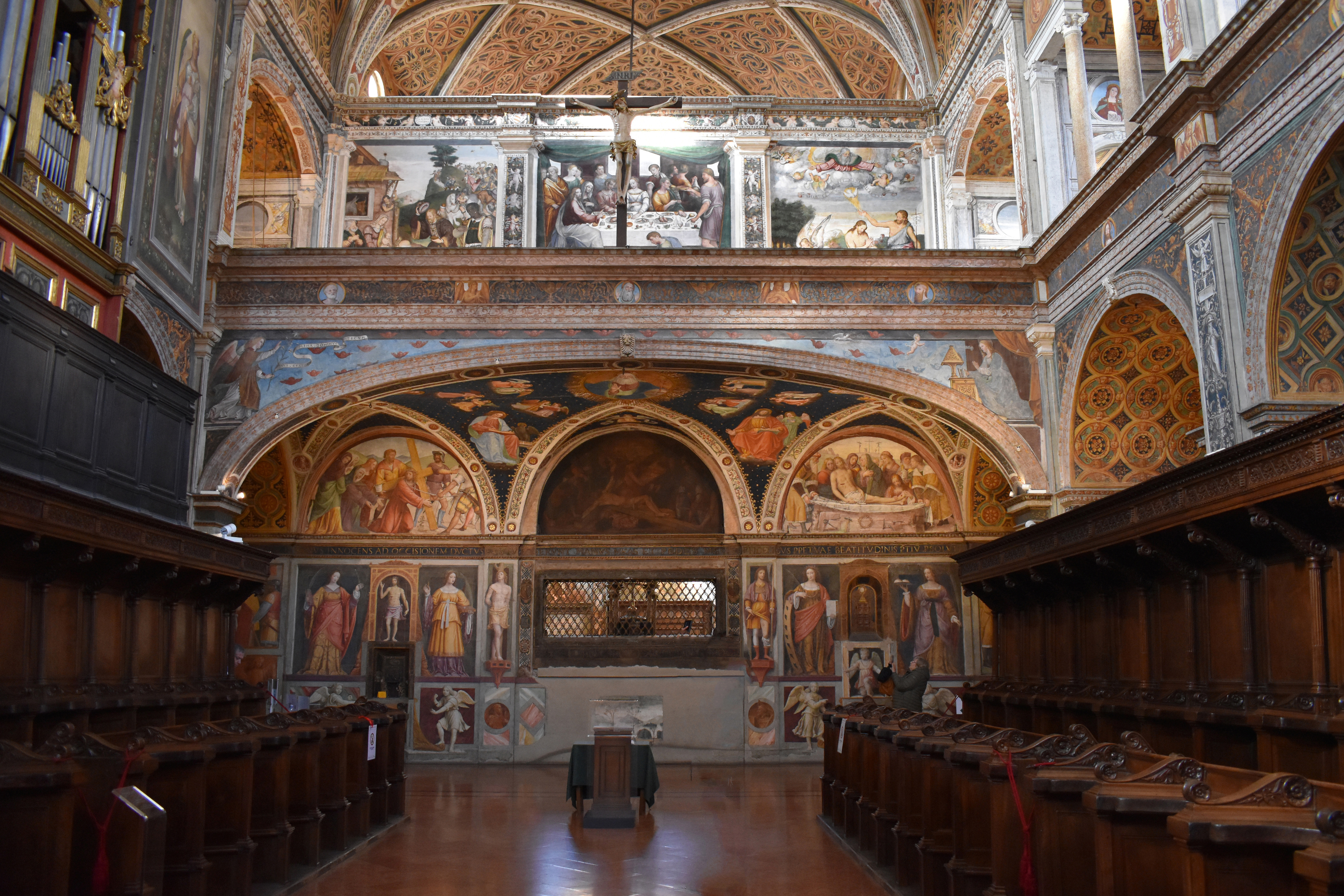 Последние расписные части относятся к недавнему времени: в первой половине XIX века своды были расписаны Алессандро Санкирико, сценографом Ла Скала, который также расписал свод собора в похожем неоготическом стиле. Возможно, работа Костантино Лонгетти – это спокойные пейзажи в боковых капеллах, где до начала XX века были росписи с черно-белыми вертикальными полосами.
