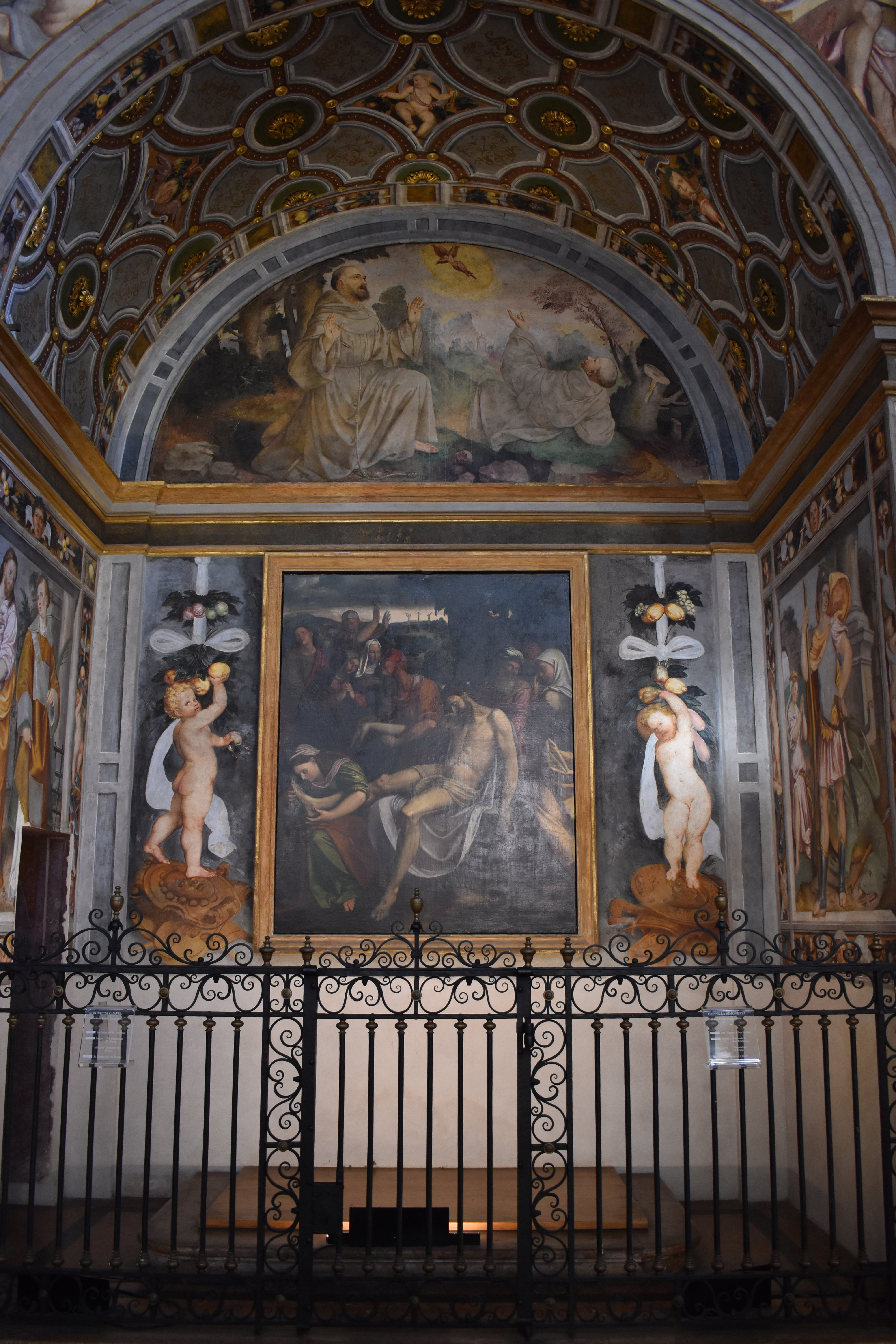 Капелла Симонетты (или Пьета) была построена по заказу братьев Франческо Бернардино и Джованни Баттиста Симонетты, родственников Ипполиты Сфорца (ее мать была Бьянка Симонетта). В центре процессии путти и святых находится картина "Оплакивание"; над всем этим работали Каллисто Пьяцца и его сын Фурио.