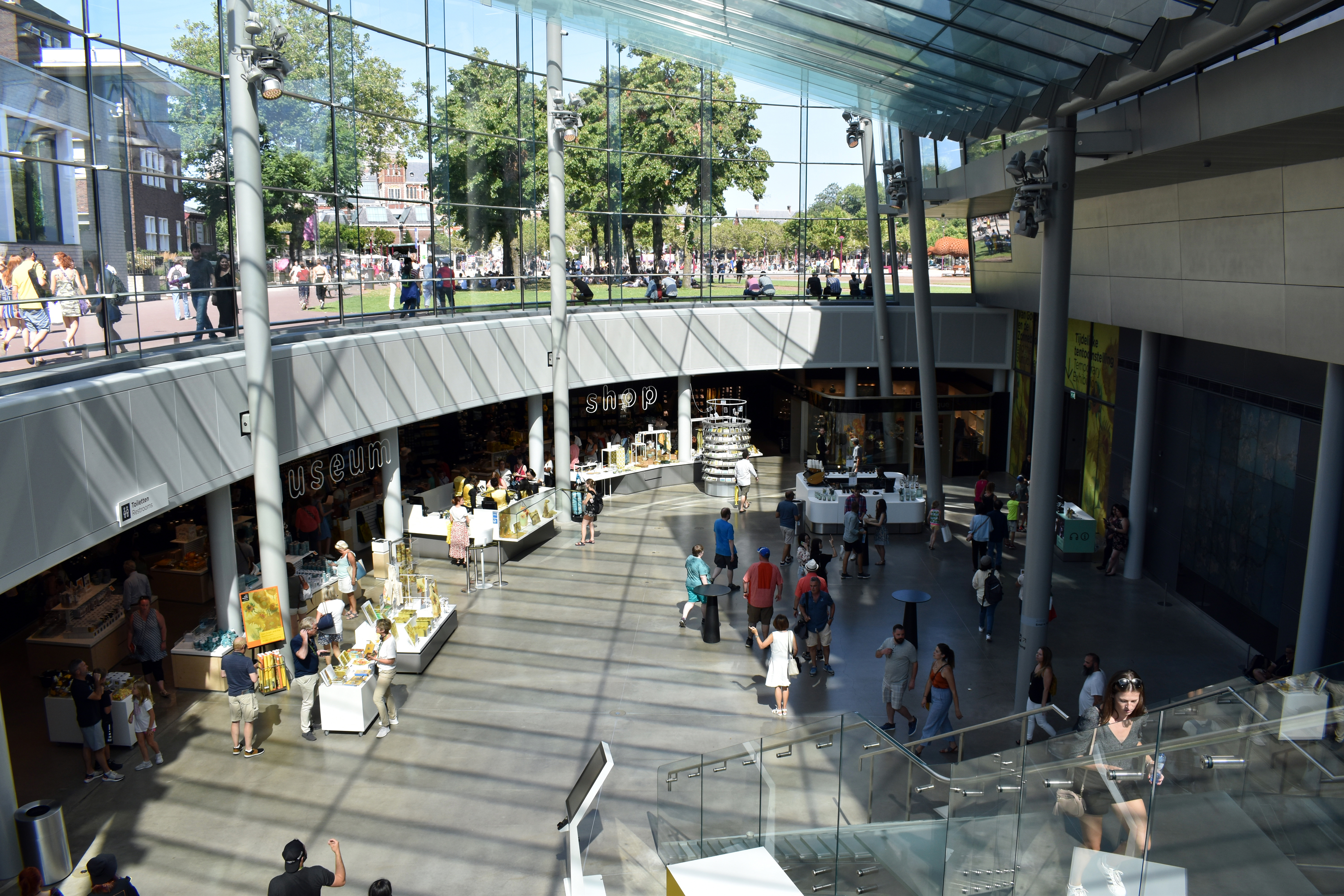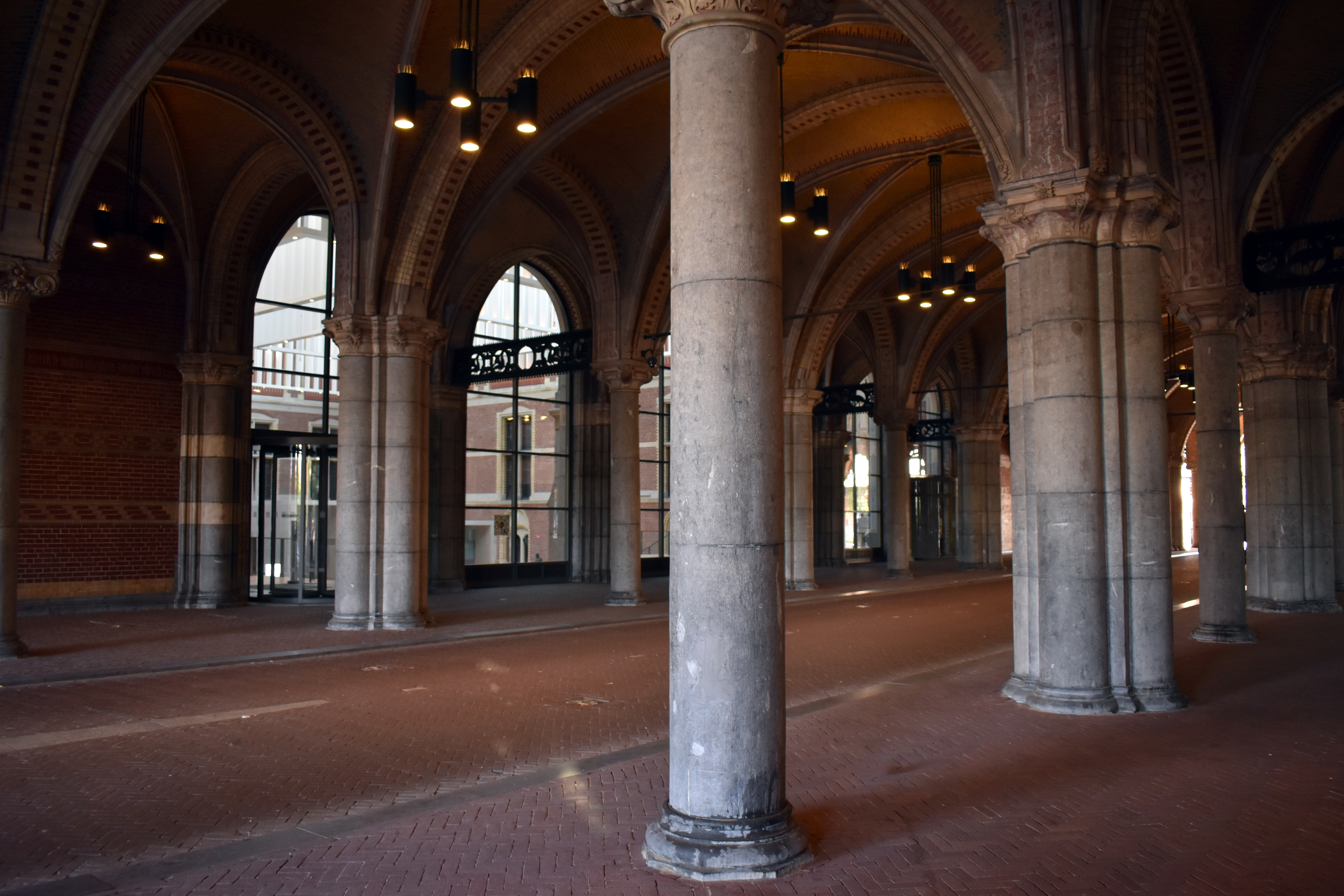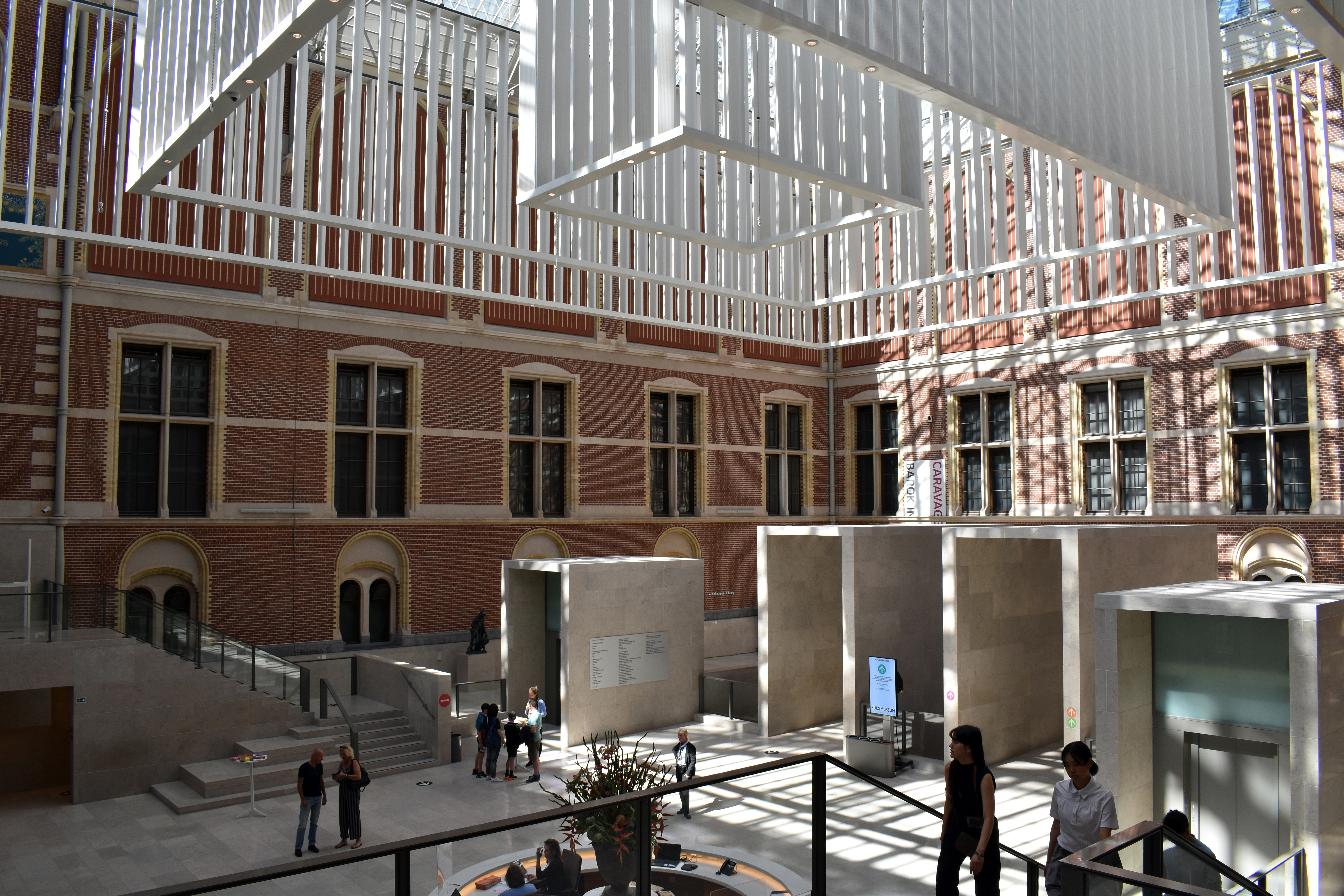 Вход в музей устроен из широкого пассажа, пересекающего здание насквозь и разделяющего его на два крыла. По этой крытой арочной галерее проходит одна из самых оживлённых пешеходных и велосипедных дорожек Амстердама, в которой любят исполнять полюбившиеся мелодии и песни местные музыканты.